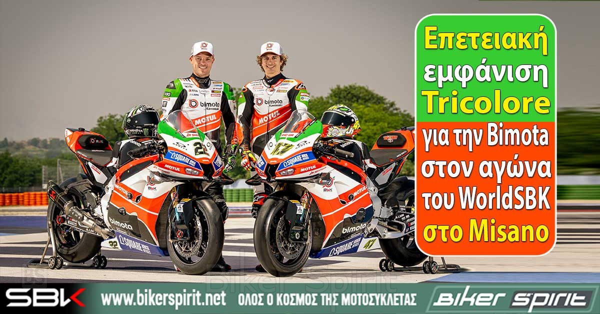 Με αφορμή τον πιο κοντινό αγώνα στην έδρα της στο Rimini, η Βimota by Kawasaki Racing Team (BbKRT) θα παρουσιάσει μια ειδική επετειακή εμφάνιση στις μοτοσυκλέτες KB998 Rimini για τον γύρο του WorldSBK στο Misano. Οι μοτοσυκλέτες, αλλά και οι στολές των αναβατών, θα φέρουν τα χρώματα της ιταλικής σημαίας: κόκκινο, λευκό και πράσινο, τιμώντας τον «εντός έδρας» αγώνα της ομάδας.