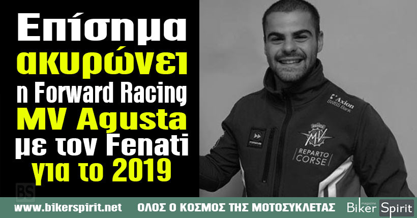 Επίσημα ακυρώνει η Forward Racing Team MV Agusta με τον Fenati για το 2019