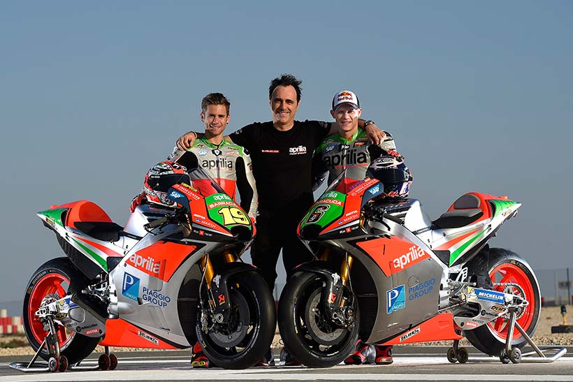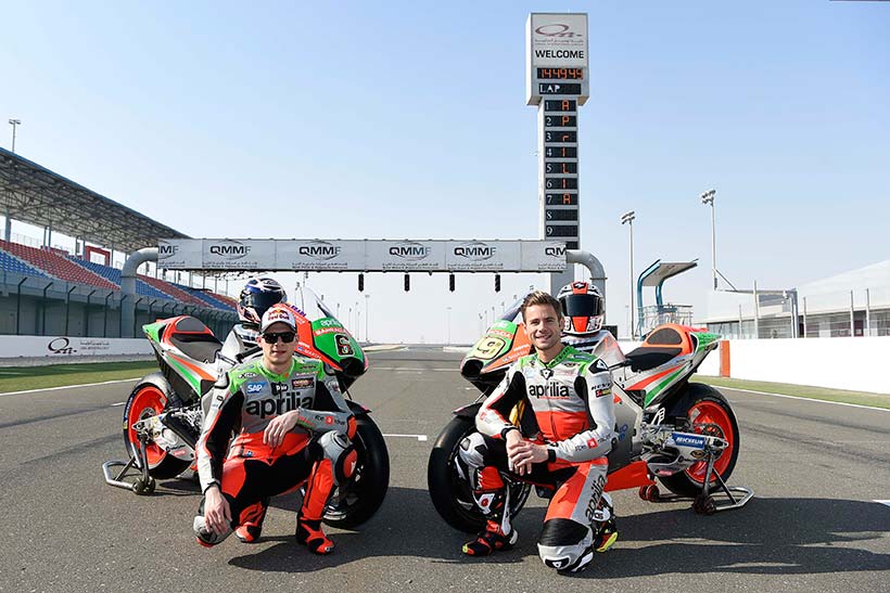 Ο Alvaro Bautista και ο Stefan Bradl είχαν μια ουσιαστική συμβολή στην ανάπτυξη της νέας μοτοσυκλέτας, καθώς στην ουσία την προηγούμενη σεζόν χρησιμοποίησαν τους αγώνες σαν ένα «ζωντανό εργαστήριο». Bautisita και Bradl είχαν την ευκαιρία να εξοικειωθούν με την 2016 RS-GP κατά τη διάρκεια των προηγούμενων ιδιωτικών δοκιμών στην πίστα του Losail, αναγνωρίζοντας αμέσως τις μεγάλες δυνατότητες της νέας μοτοσυκλέτας. Το ολοκαίνουργιο εργοστασιακό πακέτο της Aprilia, μαζί με τον νέο προμηθευτή ελαστικών και τον ελεγχόμενο πακέτο ηλεκτρονικών, απαιτεί μια φάση εξομάλυνσης των διακυμάνσεων για να μπορέσουν οι δυο οδηγοι να εξοικειωθούν στην νέα σεζόν.