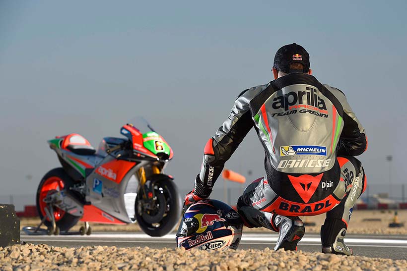 Stefan Bradl: «Η πρώτη επαφή με τη νέα μοτοσικλέτα ήταν σίγουρα θετική, παρά το γεγονός ότι είναι ακόμη πολύ νωρίς. Οι τεχνικοί της Aprilia Racing έκαναν σπουδαία δουλειά προς τη σωστή κατεύθυνση. Τώρα η δουλειά μας θα είναι να διερευνήσουμε τις δυνατότητες της RS-GP γύρο με το γύρο. Έχουμε πραγματικά πολύ δουλειά, αλλά είναι αλήθεια ότι παράλληλα έχουμε και μεγάλο περιθώριο βελτίωσης. Μαζί με τη νέα μοτοσικλέτα, έχουμε επίσης τα νέα ηλεκτρονικά και τα ελαστικά, πτυχές που είχαμε ήδη αρχίσει να δουλεύουμε, αλλά τώρα απαιτούν ανάπτυξη. Δεν θα βαρεθούμε εμείς, αυτό είναι το βέβαιο. Για πρώτη φορά στην καριέρα μου, δουλεύω σε μια εργοστασιακή ομάδα κι εξελίσσω ένα καινούργιο project. Νομίζω ότι αυτή είναι η μεγαλύτερη δυνατή ευκαιρία για έναν αναβάτη που θέλει να θέσει στόχο να μείνει στην κορυφή.»