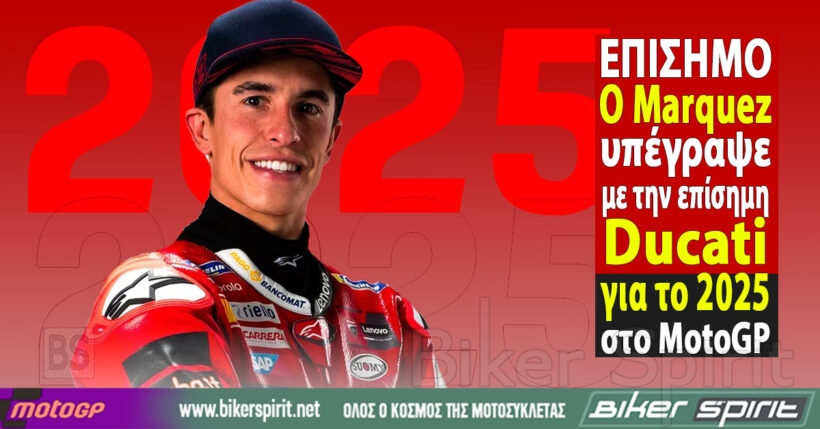 … Continue reading ΕΠΙΣΗΜΟ: Ο Marc Marquez θα αγωνιστεί στην εργοστασιακή ομάδα Ducati MotoGP απο το 2025