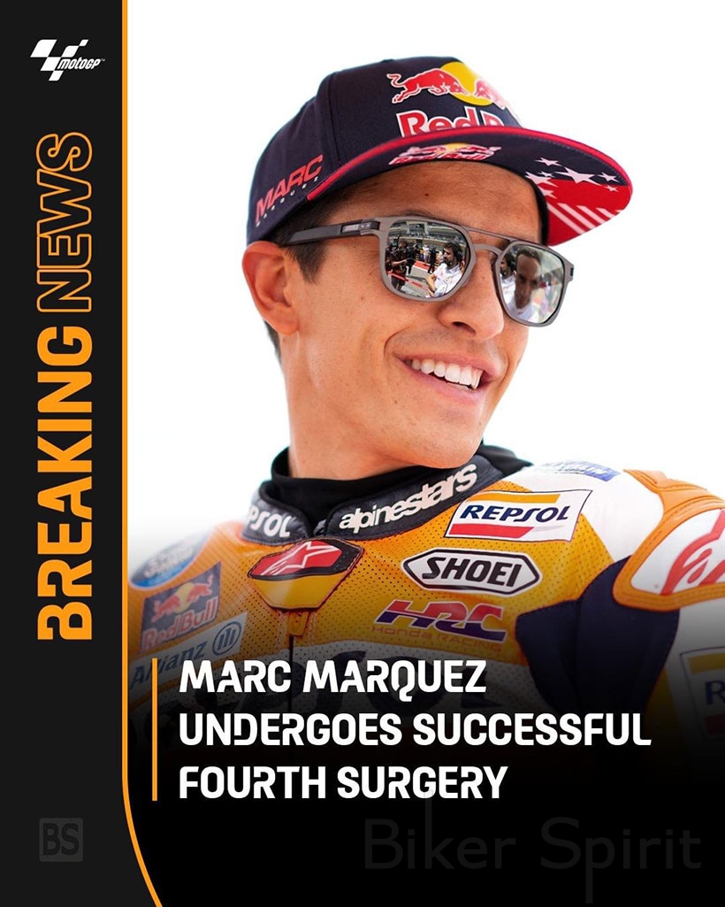 O Marc Marquez έγραψε στα Sosial του “Γεια σε όλους! Σας ευχαριστώ όλους για τα μηνύματα συμπαράστασης! Η εγχείρηση πήγε καλά, και νιώθω καλύτερα! Ευχαριστώ τον Δρ Joaquín Sánchez Sotelo και την ομάδα του για την εκπληκτική δουλειά.”