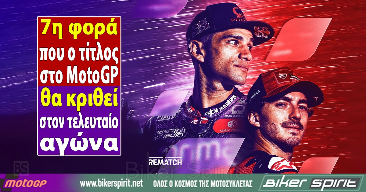 Το GP της Βαρκελώνης θα είναι η έβδομη φορά που αποφασίζεται ο τίτλος του MotoGP στον τελευταίο γύρο της σεζόν, αυτή τη φορά με πρωταγωνιστές τους Jorge Martín και Francesco Bagnaia και με +24 βαθμούς υπέρ του Martin.
