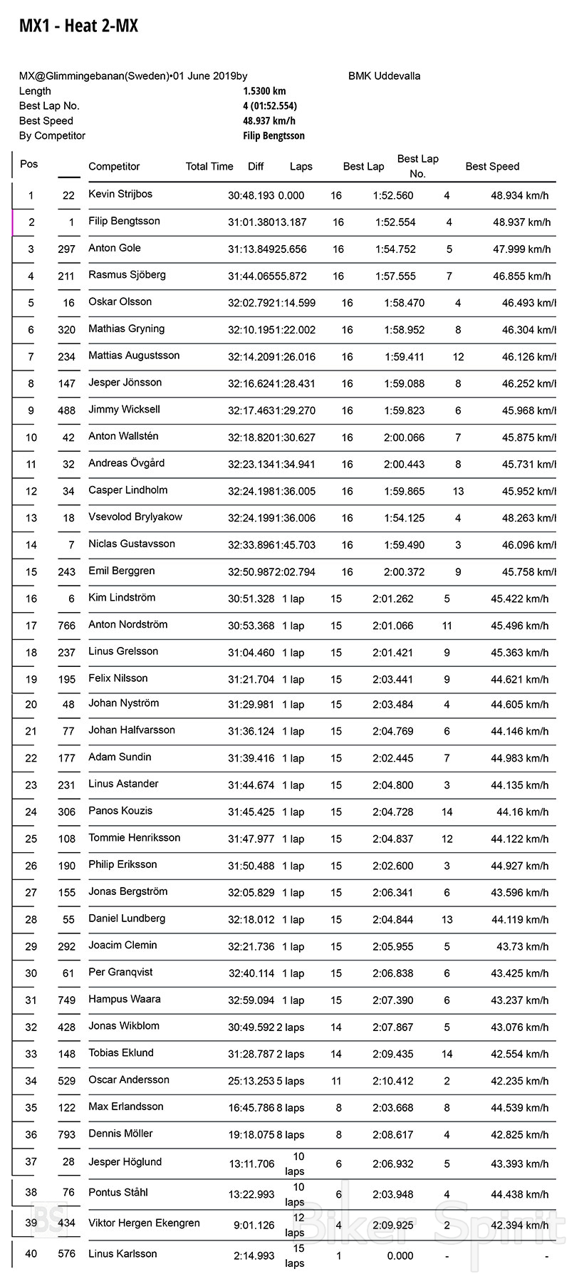 Στη σχάρα εκκίνησης βρέθηκαν συνολικά 40 αθλητές. Η εμπειρία του Παναγιώτη τον βοήθησε να διαχειριστεί την βροχή και μετά από πολλές αλληλοπροσπεράσεις τα κατάφερε να τερματίσει 23ος.