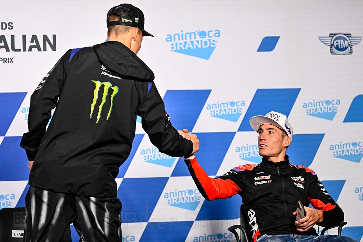 «Πρέπει να σκεφτόμαστε το πρωτάθλημα, αλλά θέλω να το πάω αγώνα με αγώνα. Είναι σαν την αρχή του πρωταθλήματος, αλλά δεν είναι μόνο ο Pecco, αλλά και οι Aleix, Enea και Jack. Είμαστε πέντε αναβάτες και το top 3 είναι πολύ σφιχτό. Αυτός μπορεί να είναι ένας καλός αγώνας για εμάς. Αυτή είναι μια από τις αγαπημένες μου πίστες, αλλά το 2019 βγήκα στην πρώτη στροφή και δεν έχω σχεδόν καμία εμπειρία εδώ με τη Yamaha.»