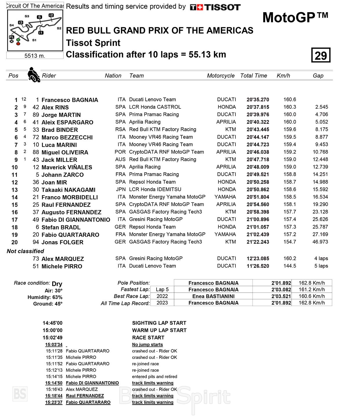 «Ήμουν πίσω από μερικούς αναβάτες στην αρχή του αγώνα που δεν μπορούσα να προσπεράσω. Δεν μπορούσα καν να προσπαθήσω να παλέψω μαζί τους. Και μετά τη πτώση έκανα τον καλύτερο μου χρόνο γύρου, παρόλο που δεν ήμουν πραγματικά στο όριο και όταν είσαι τελευταίος δεν έχεις το ίδιο κίνητρο.»