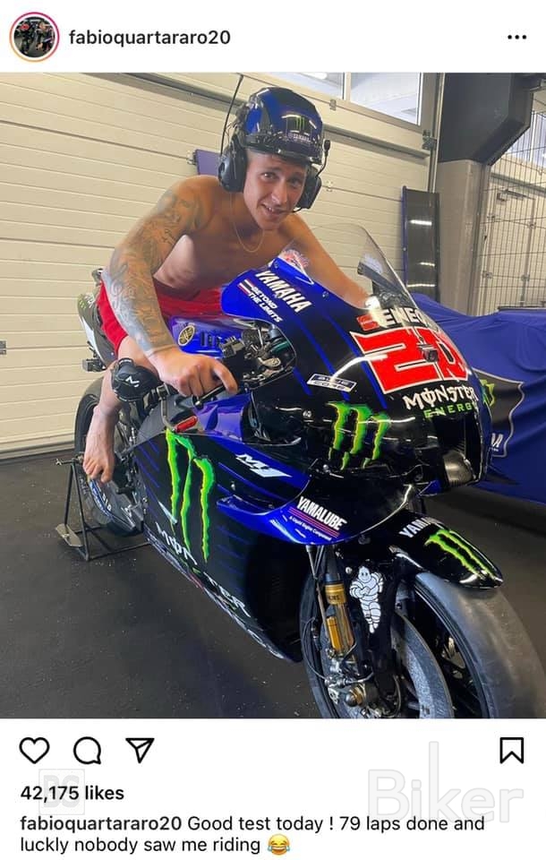 Ο Γάλλος την Δευτέρα στο τεστ της Καταλονίας δημοσίευσε μια ειρωνική φωτογραφία, όπου εμφανίστηκε γυμνός με μόνο εάν σορτς στη μοτοσικλέτα του, αναφερόμενος στο τι συνέβη με τη φόρμα του την Κυριακή, γράφοντας: «Μια καλή μέρα το τεστ σήμερα, έκανα 79 γύρους και ευτυχώς δεν με είδε κάνεις να οδηγώ.»