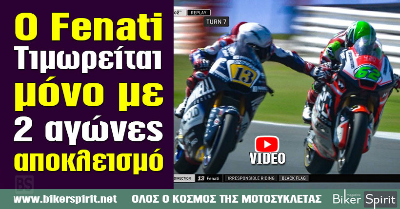 O Fenati τιμωρείται μόνο με 2 αγώνες αποκλεισμό για την βρώμικη ενέργεια του στον αγώνα του Misano