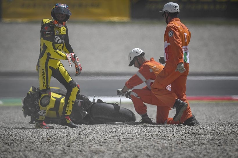 Ο Ισπανός προσπάθησε για ακόμη μια φορά να σώσει την πτώση, αλλά μόλις η μοτοσυκλέτα ακούμπησε στην αμμοπαγίδα, έφυγε απο τον έλεγχο του.