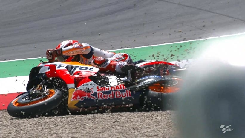 Ο Marquez είχε πτώση στην αρχή του αγώνα, χωρίς να τραυματιστεί και συνέχισε τερματίζοντας 16ος.