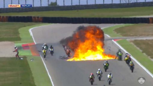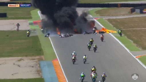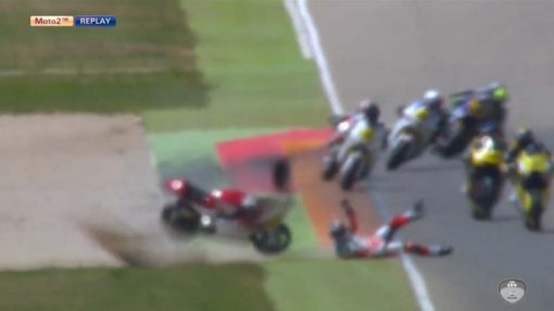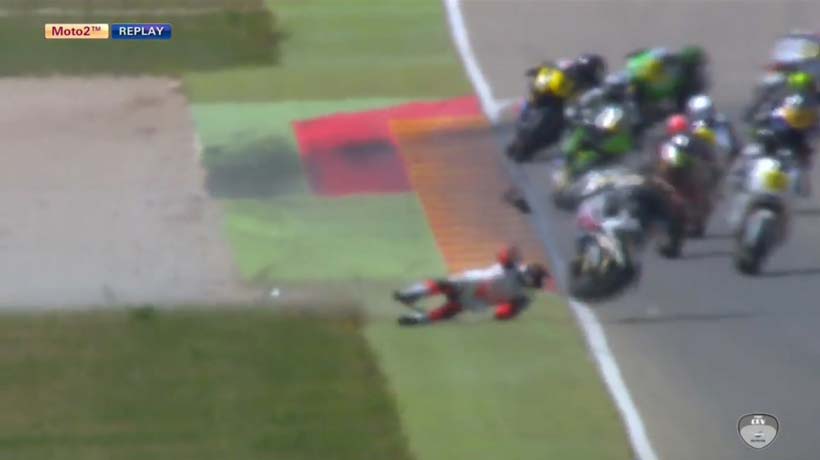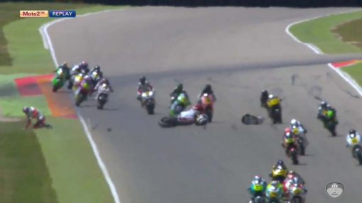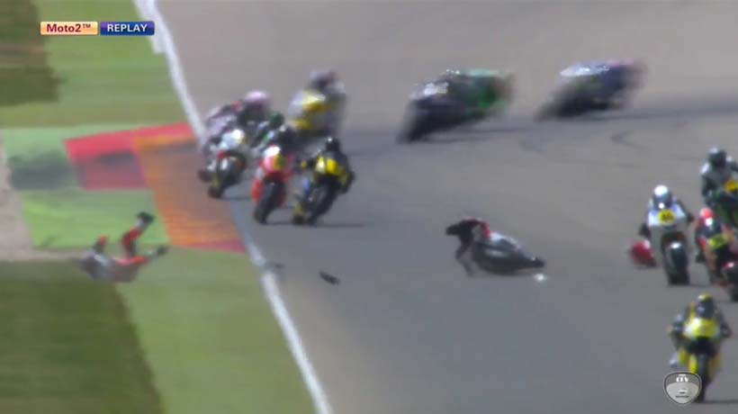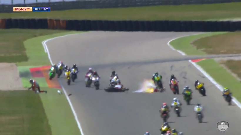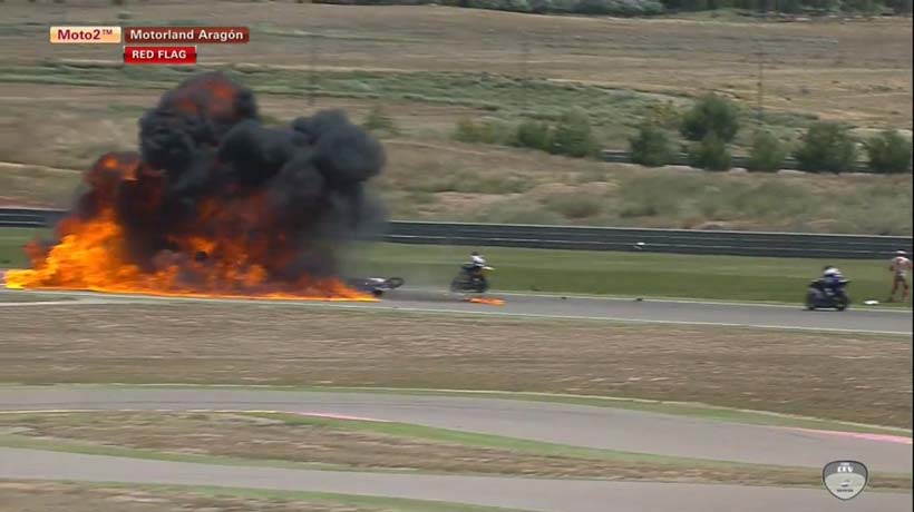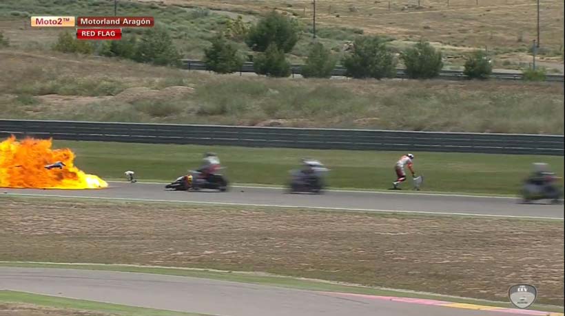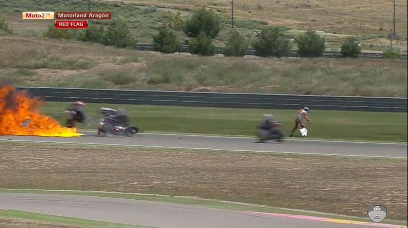 Όλα έγιναν όταν ένας οδηγός έχασε τον έλεγχο της μοτοσικλέτας του, και έπεσε , αλλά παρόλο που έπεσε έξω, η μοτοσυκλέτα του ξαναμπήκε μέσα στην πίστα προκαλώντας πραγματικό χάος. Πτώσεις αναβατών, φωτιά, εκρήξεις και κόκκινη σημαία. Ο αγώνας διεκόπη. Ευτυχώς, αν και υπήρξαν τραυματισμοί, όλοι οι εμπλεκόμενοι είναι σε καλή κατάσταση.