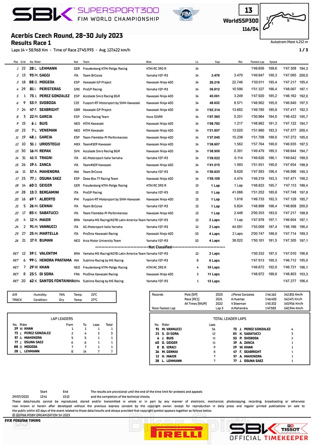 Ο Γιάννης Περιστέρας κατέκτησε την πρώτη του θέση στην πρώτη δεκάδα με την τέταρτη θέση, ξεκινώντας από την 29η στο grid, και έγινε ο πρώτος Έλληνας αναβάτης που σημείωσε βαθμούς στο WorldSSP300.