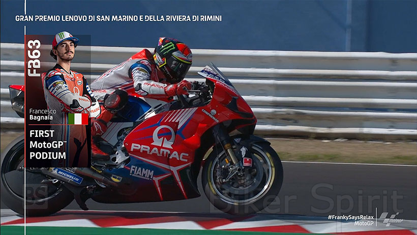 Στην 2η θέση ο εκπληκτικός Pecco Bagnaia με την δορυφορική Ducati, όπου έκανε ένα φοβερό αγώνα ξεκινώντας από την 6η θέση, γράφοντας εκπληκτικούς χρόνους και έχοντας έναν πολύ δυνατό ρυθμό προσπέρασε τους πάντες φτάνοντας στην 2η θέση, 2 δευτερόλεπτα πίσω από τον νικητή, κερδίζοντας το πρώτο του βάθρο στην μεγάλη κατηγορία!