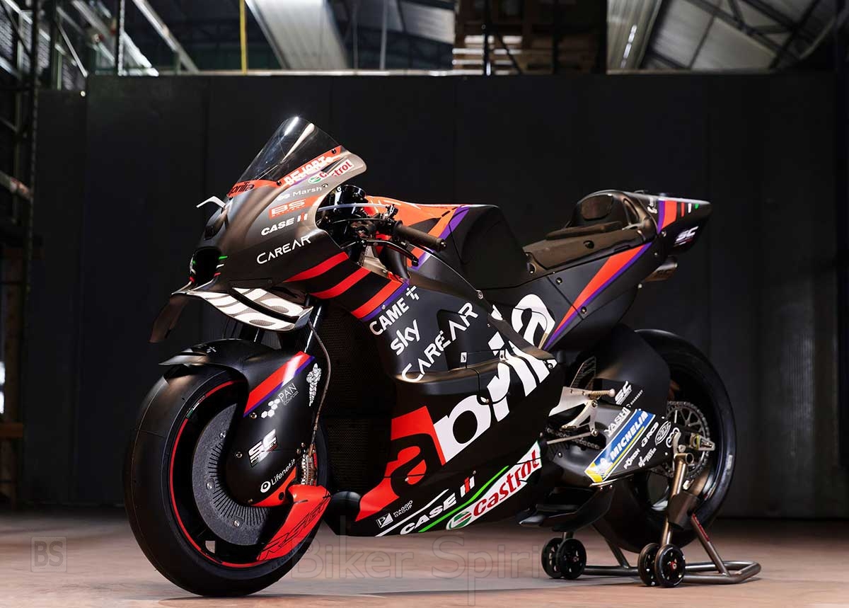 Στον τομέα της τεχνικής, εξελίχθηκε κάθε πτυχή της Aprilia RS-GP. Ο κινητήρας V4, ο οποίος δεν μπορεί να εξελιχθεί κατά τη διάρκεια της σεζόν, έχει αυξηθεί σε ισχύ και μέγιστες στροφές ανά λεπτό, διατηρώντας παράλληλα την εξαιρετική ευκολία στην οδήγηση. Η αρχιτεκτονική του πλαισίου βασίζεται σε έναν σκελετό που έχει επανεξεταστεί με βάση τα αιτήματα των αναβατών, επιδιώκοντας την πρόσφυση και τη σταθερότητα. Η αεροδυναμική διατηρεί τις ιδέες που εισήχθησαν το 2022, όπως το κυρτό πλαϊνό πάνελ ή τη χαρακτηριστική διαμόρφωση του μπροστινού πτερυγίου και τις εξελίσσει, επιβεβαιώνοντας την τεχνολογική ηγεσία της Aprilia Racing στον τομέα αυτό. Τα ηλεκτρονικά επωφελούνται από την εισαγωγή μιας νέας Magneti Marelli ECU και τη βελτιωμένη στρατηγική διαχείρισης, σκοπός της συνεχούς δουλειάς σε κάθε αγώνα.