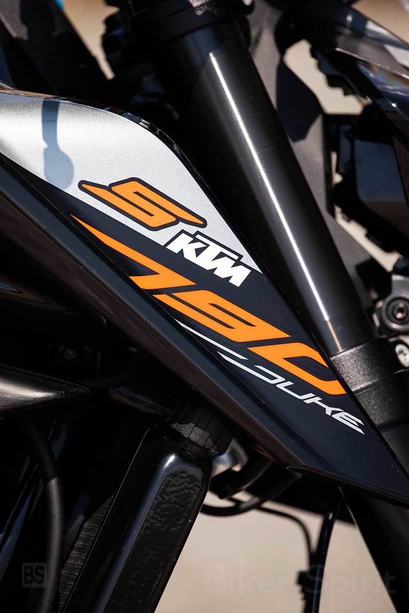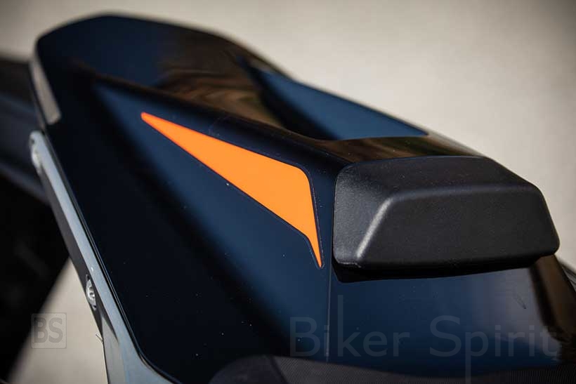 Η διάφανη αεροδυναμική ζελατίνα βελτιώνει την προστασία του αναβάτη ενώ η προσθήκη της καρίνας και του καλύμματος της σέλας συνεπιβάτη, που προέρχονται επίσης από τα KTM POWER PARTS, τονίζουν τα σπορ χαρακτηριστικά του KTM 790 DUKE S και προσθέτουν έξτρα πόντους στην εμφάνιση.