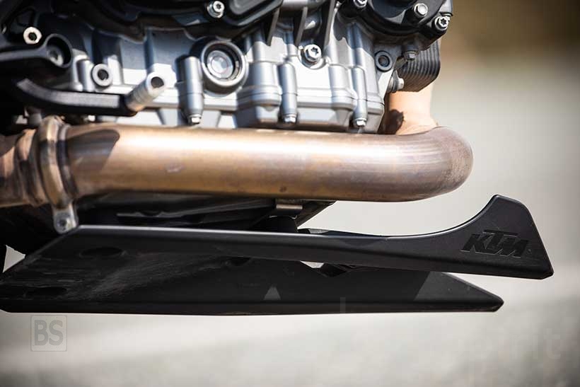 Η επιλογή του τελικού εξάτμισης της Arrow σε μαύρο αλουμίνιο με carbon τελειώματα βελτιώνει την απόδοση του δικύλινδρου σε σειρά κινητήρα και κάνει το KTM 790 DUKE S ακόμη πιο ελαφρύ. Παράλληλα απογειώνει την επιθετική σχεδίαση του “νυστεριού” ενώ ο μπάσος ήχος αποτελεί την ιδανική μελωδία στην sport οδήγηση.
