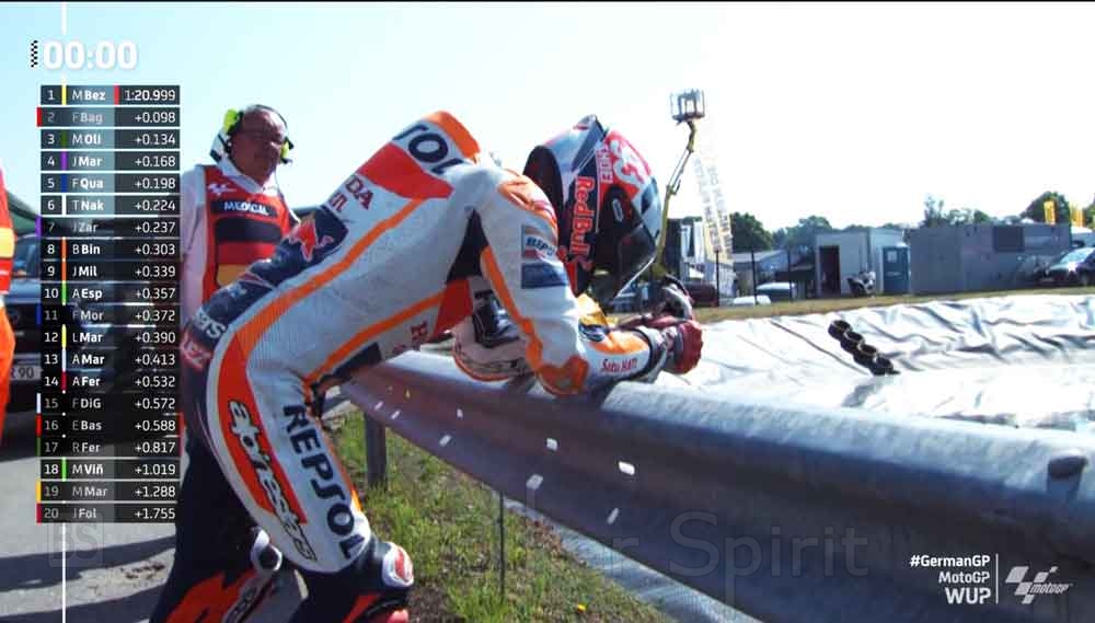 Για όσους ακόμα δεν έχουν καταλάβει ποιος είναι αυτός ο τύπος, τα πέντε ατυχήματα που υπέστη κατά τη διάρκεια του Σαββατοκύριακου του Sachsenring θα έπρεπε να τους έχουν ανοίξει τα μάτια σας. Μπορεί να τον μισείς για το 2015 ή για οποιονδήποτε λόγο μπορεί να σε ενδιαφέρει να πιστέψεις οτιδήποτε άλλο θέλεις, αλλά η μόνη πιθανή σύγκριση που μπορούμε να σκεφτούμε για τον Marc είναι ο Έλληνας ήρωας Λεωνίδας που με απόλυτη αδιαφορία για τις συνέπειες αντιμετώπισε τον περσικό στρατό στις Θερμοπύλες.