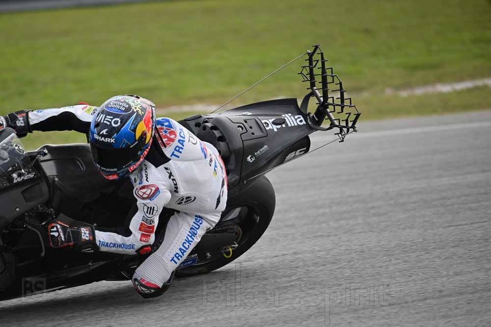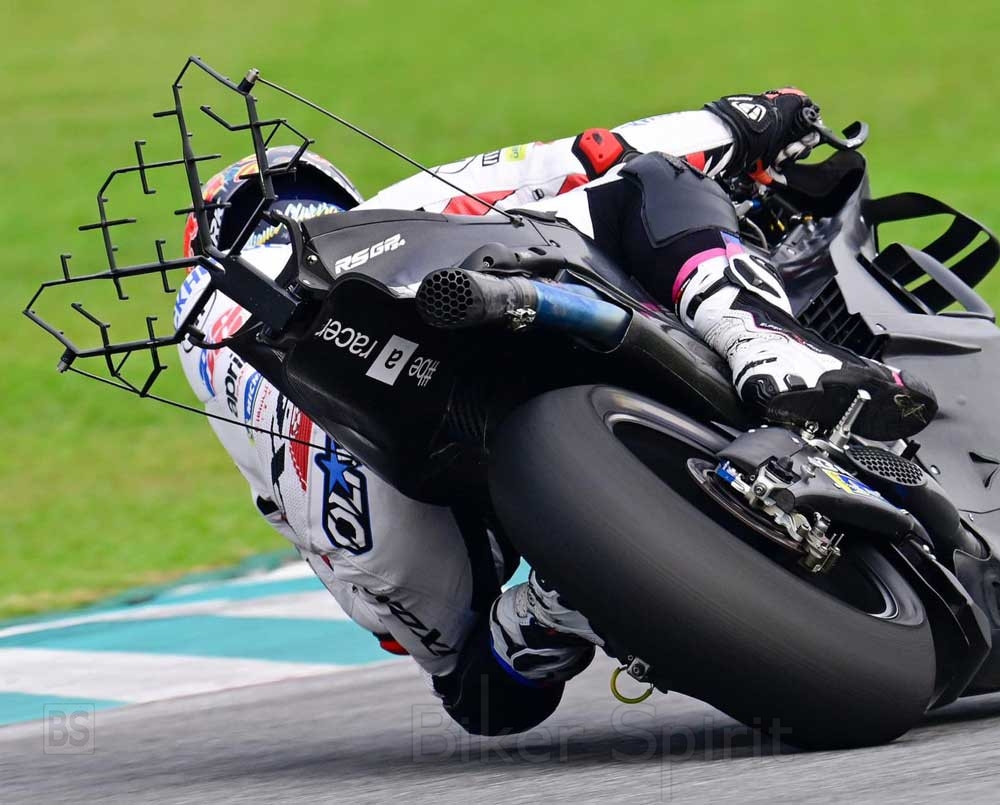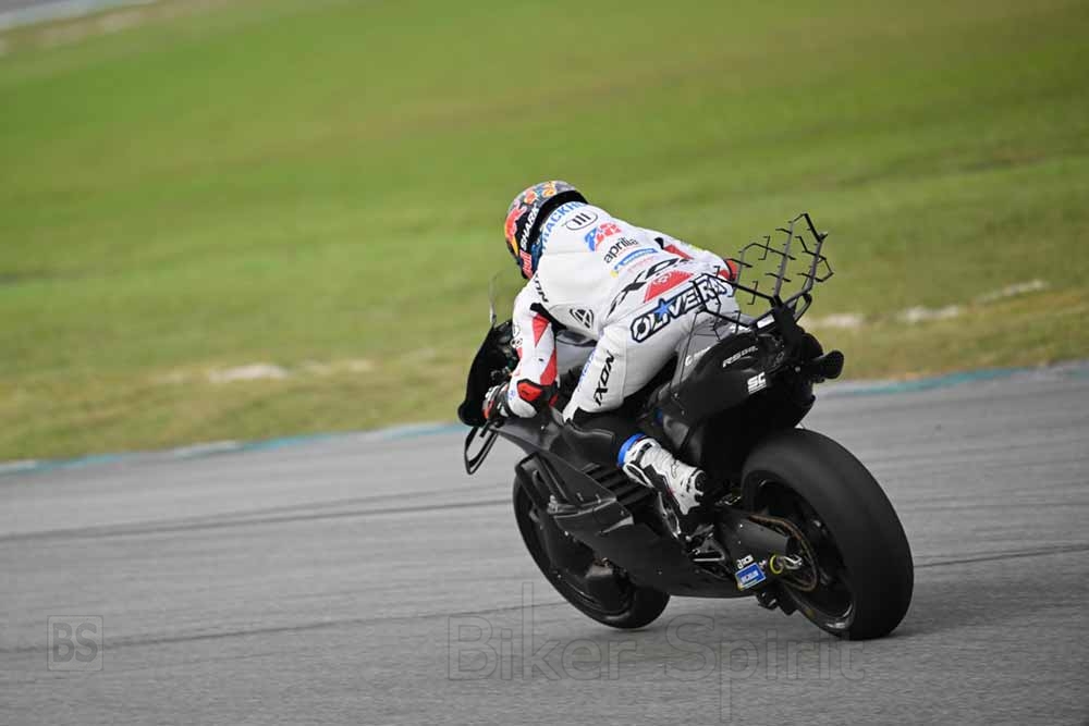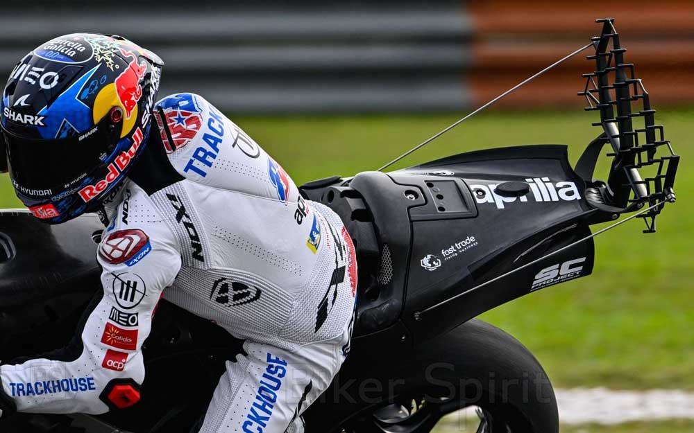 Τι είναι αυτό εκεί πίσω; Ο Miguel Oliveira είχε μια λεγόμενη αεροδυναμική σχάρα (aero rake) δεμένη στο πίσω μέρος του Aprilia RS GP του για ένα μέρος της συνεδρίας.