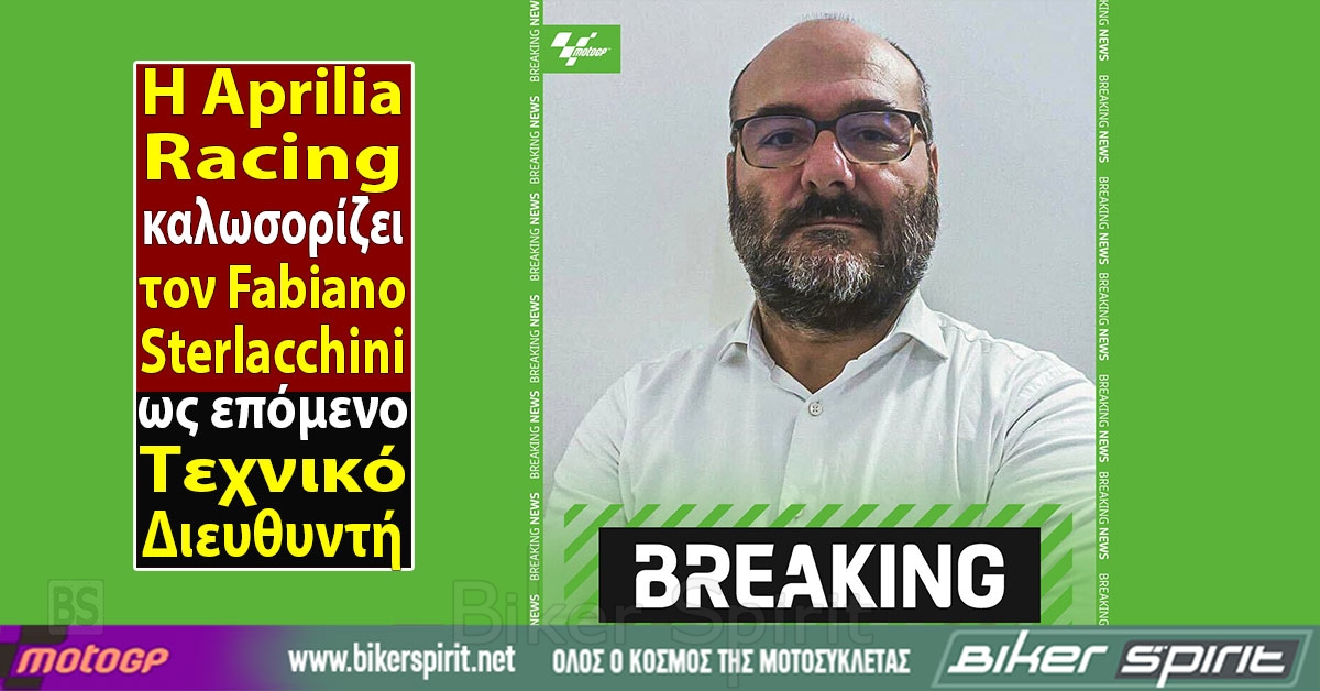 «Η Aprilia Racing με υπερηφάνεια ανακοινώνει ότι ο Fabiano Sterlacchini θα αναλάβει το ρόλο του Τεχνικού Διευθυντή από τη Δευτέρα 18 Νοεμβρίου 2024.»