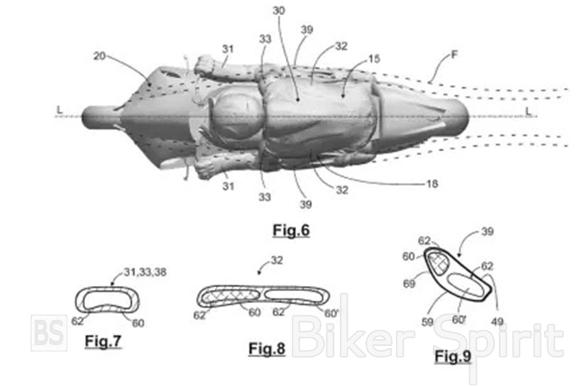 Η Aprilia έχει καταθέσει αίτηση για δίπλωμα ευρεσιτεχνίας που δείχνει πώς τα αγωνιστικά πάνελ μπορούν να βελτιωθούν αεροδυναμικά. Για δεκαετίες, οι αεροδυναμικές καμπύλες έχουν βρεθεί σε αγωνιστικές στολές, οι οποίες αρχικά αναπτύχθηκαν ως πρόσθετη προστασία πλάτης και αργότερα αποδείχτηκαν αεροδυναμικά βοηθήματα. Εκτός από αυτό και ορισμένες περαιτέρω εξελίξεις με τη μορφή κρανών, έχει γίνει ελάχιστη προσπάθεια για τη βελτιστοποίηση του εξοπλισμού του αναβάτη αεροδυναμικά.
