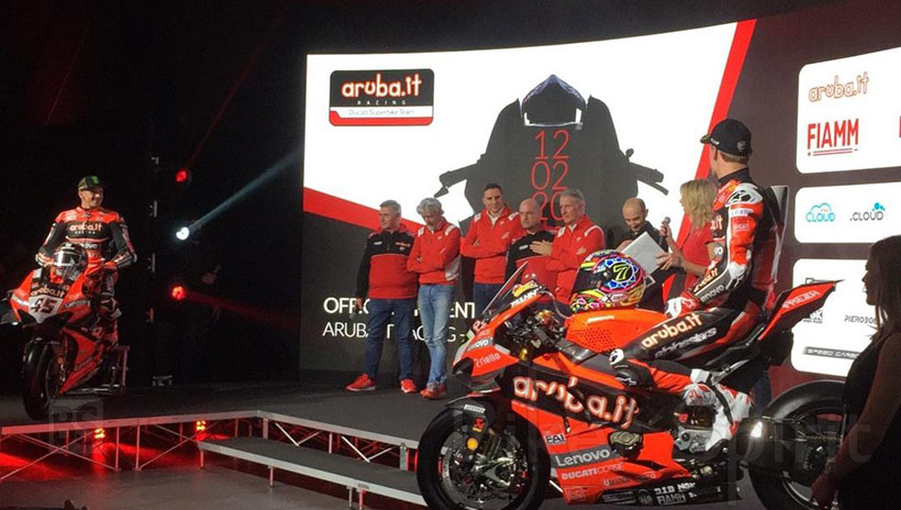 Στην παρουσίαση έδωσαν το παρόν οι Stefano Cecconi (CEO Aruba SpA και επικεφαλής ομάδας Aruba.it Racing – Ducati), Claudio Domenicali (CEO Ducati Motor Holding SpA), Luigi Dall’Igna (Γενικός Διευθυντής της Ducati Corse), Paolo Ciabatti (Αθλητικός Διευθυντής της Ducati Corse), Serafino Foti (Διευθυντής Ομάδας Aruba.it Racing – Ducati), Marco Zambenedetti (Τεχνικός Συντονιστής της SBK Ducati Corse), Daniele Casolari (Team Owner Feel Racing) και φυσικά οι δυο οδηγοί της ομάδας, Scott Redding και Chaz Davies.
