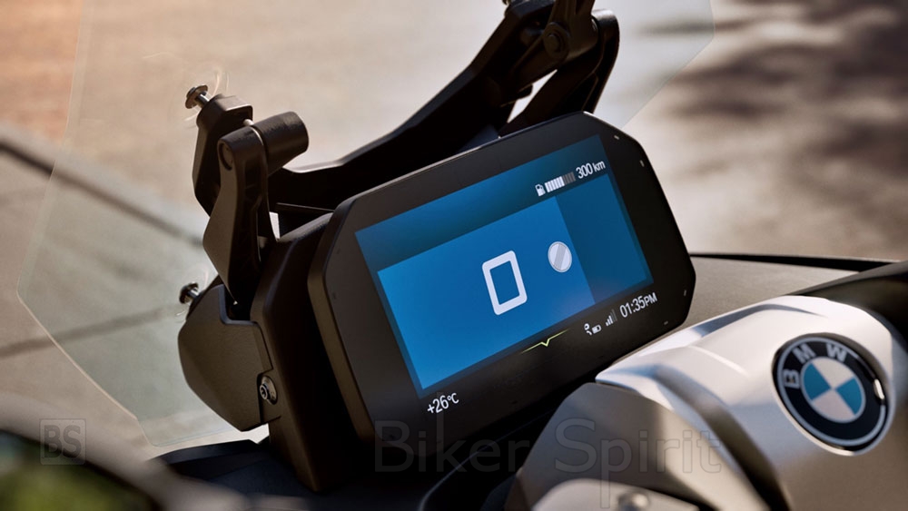 Συνδεσιμότητα — μεγάλο εύρος πληροφοριών και λειτουργιών μέσω της μεγάλης και ευανάγνωστης οθόνης TFT 6,5” που περιλαμβάνεται στον στάνταρ εξοπλισμό. Προ-εγκατάσταση συστήματος πλοήγησης και για τα δύο μοντέλα και μία οθόνη 10,25” για το BMW C 400 GT ως εργοστασιακός, προαιρετικός εξοπλισμός.