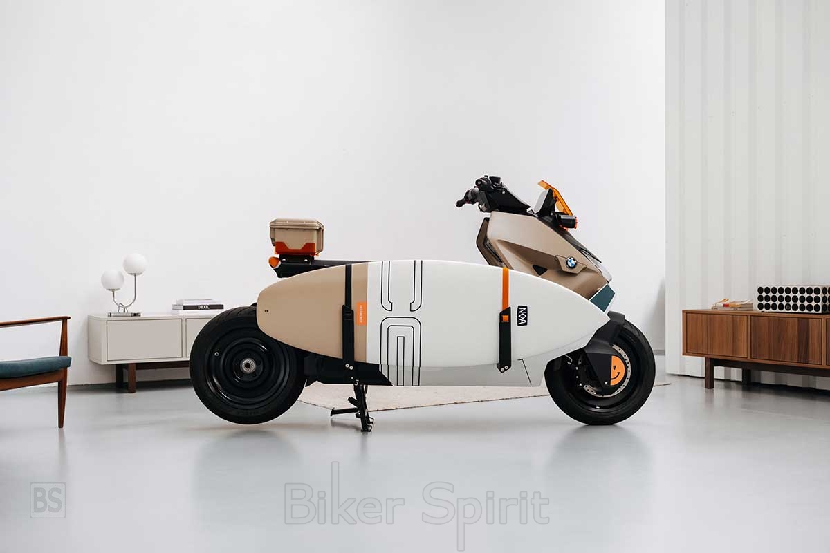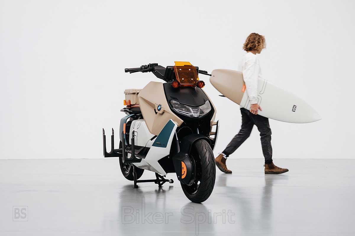 Σύμφωνα με το σύνθημα «Η δράση συναντά τη μόδα», η BMW CE 04 Vagabund Moto Concept έλαβε μια λειτουργική επάνω θήκη για να συμπληρώσει τον στάνταρ χώρο αποθήκευσης, μαζί με μια σανίδα του σερφ με σύστημα μεταφοράς ενσωματωμένο στο όχημα – είτε για ταξίδι στο θάλασσα ή στην πλησιέστερη λίμνη. «Η σανίδα του σερφ δεν είναι απλώς ένα κομμάτι αθλητικού εξοπλισμού: είναι επίσης μια μεταφορά για έναν βιώσιμο αστικό τρόπο ζωής. Η BMW CE 04 Vagabund Moto Concept συνδυάζει εργασία, αναψυχή και ατομική αίσθηση, αποδεικνύοντας ότι δεν χρειάζεται να υπάρχει αντίφαση μεταξύ αυτών των τομέων», καταλήγει ο Oliver Balzer.