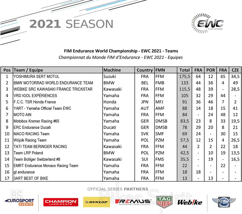 Χάρη στη νίκη τους, η BMW Motorrad World Endurance Team κέρδισε τη συνολική δεύτερη θέση.