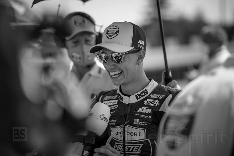 Και τότε ήταν μαζί μας για την εκκίνηση της Carxpert PrüstelGP Team 2020, μπροστά από χορηγούς και πολλούς οπαδούς στο Sachsenring. Αυτός ο φιλικός Ελβετός με τη γοητευτική του προφορά, εκτιμήθηκε πραγματικά από την αγωνιστική κοινότητα, χάρη στο απίστευτα θετικό του χάρισμα. Γρήγορα έγινε αγαπημένος του κοινού και για εμάς ήταν η αρχή μιας εξαιρετικής συνεργασίας.