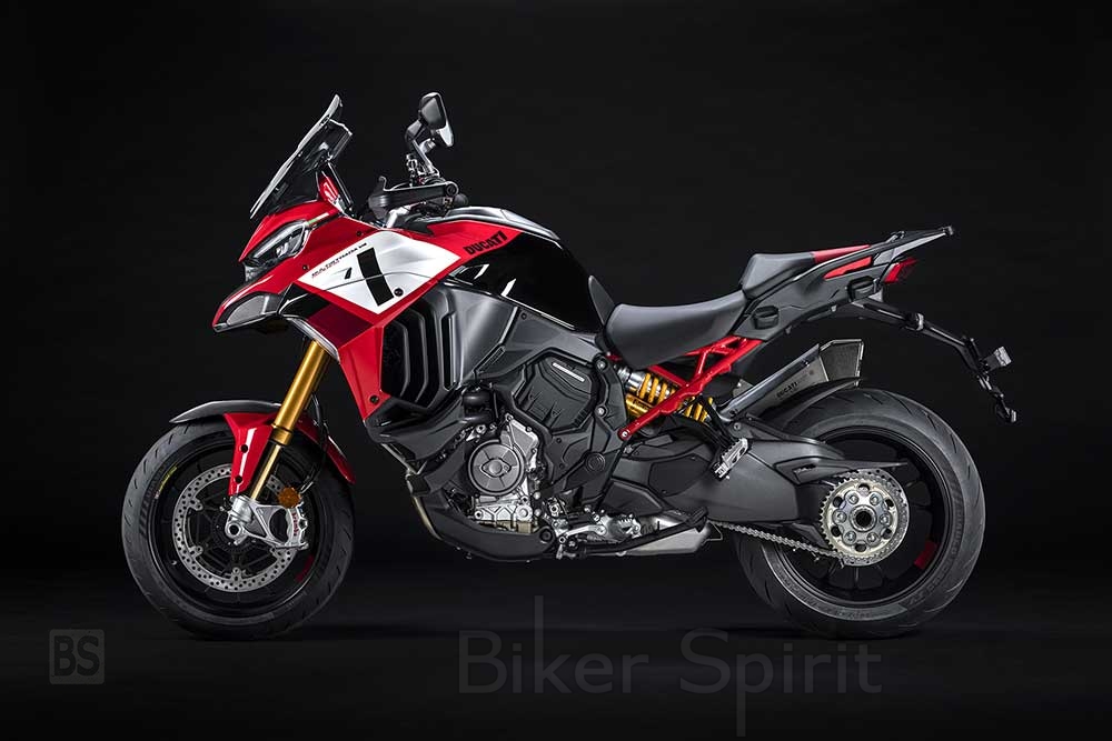 Η Multistrada V4 Pikes Peak βασίζεται στην εξαιρετική πλατφόρμα Multistrada V4 όπου οι επιδόσεις, η ομαλή λειτουργία και η αξιοπιστία που προσφέρει ο κινητήρας V4 Granturismo, μαζί με το περιορισμένο βάρος, την ευκολία χειρισμού, την άνεση για αναβάτη και επιβάτη, τον υπερσύγχρονο εξοπλισμό και τα κορυφαία ηλεκτρονικά, αποτελούν μέρος των ακρογωνιαίων λίθων της γκάμας. Ξεκινώντας από αυτά τα γερά θεμέλια, η νέα V4 Pikes Peak εισάγει σημαντικές αλλαγές όσον αφορά τη ρύθμιση του πλαισίου, την εργονομία, τα ηλεκτρονικά χειριστήρια καθώς και πολλά ειδικά εξαρτήματα, που δίνουν στη μοτοσυκλέτα μια σαφώς πιο σπορ συμπεριφορά σε σύγκριση με τη Multistrada V4, με στόχο να ικανοποιήσει μια μεγάλη γκάμα αναβατών που αναζητούν δυναμικές επιδόσεις στον κόσμο των dual μοτοσυκλετών.