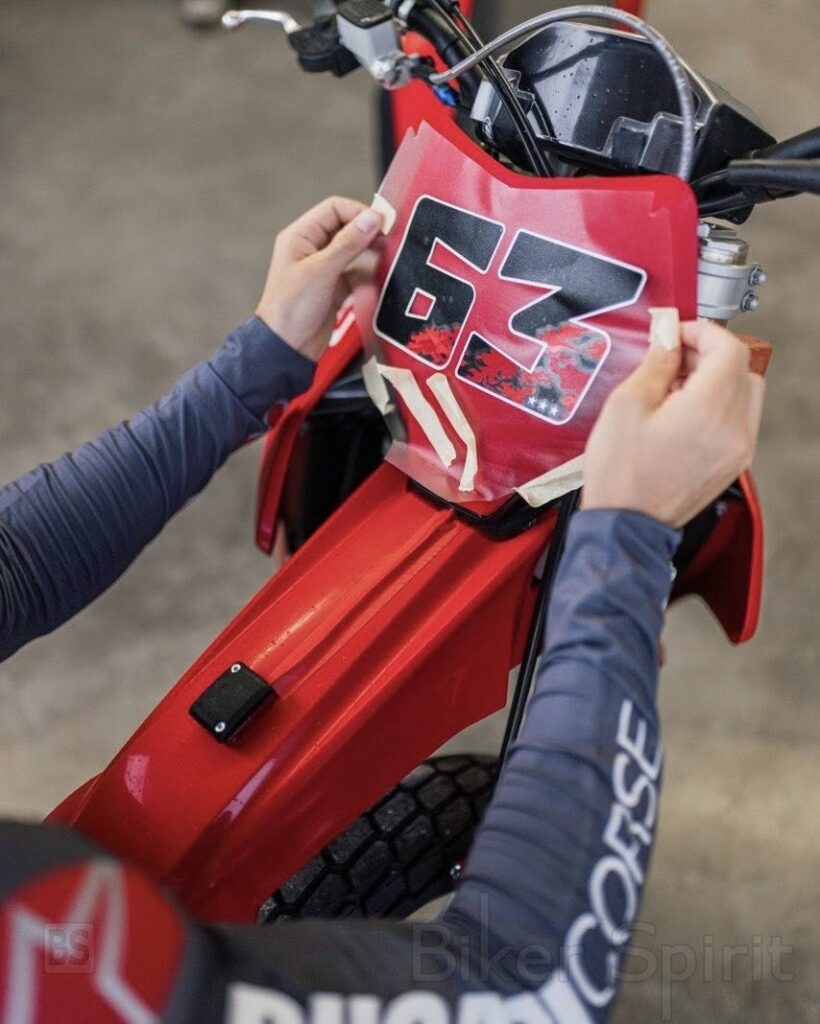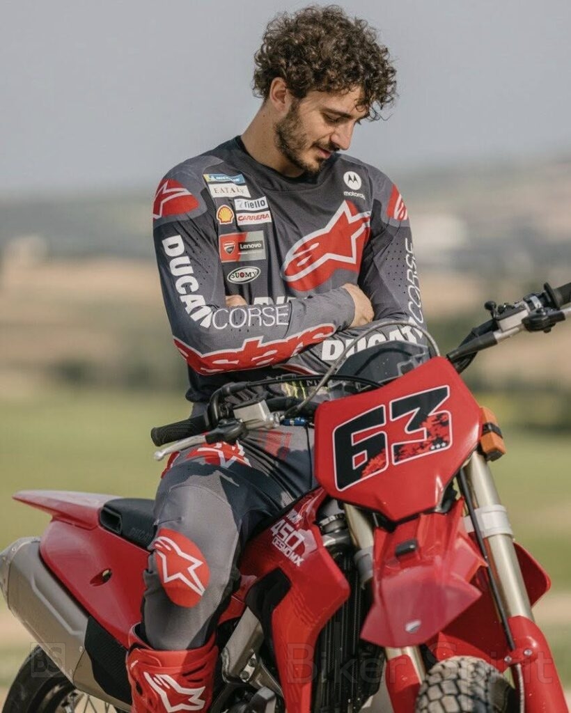 Η νέα «Desmo450 MX flat track» είναι εξοπλισμένη με ειδική ανάρτηση και κιτ τροχών που κατασκευάστηκαν αποκλειστικά για τον Ιταλό. Η παρουσίασή της έγινε με μία φωτογραφία στα social media της Ducati, όπου βλέπουμε τον Bagnaia με το νέο δημιούργημα, έτοιμο για δράση στο MotoRanch του Valentino Rossi στην Tavullia, έναν χώρο όπου ο Marquez είχε αφήσει εποχή με την εμφάνισή του το 2014, σε μία επίσκεψη που άφησε ιστορία.