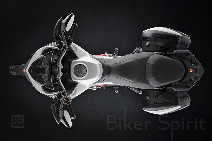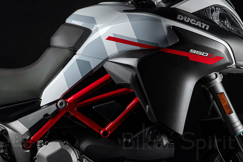 Το χρώμα “GP White” εμπνέεται από τα γραφικά της Ducati MotoGP και βασίζεται σε ένα συνδυασμό χρωμάτων που εναλλάσσεται το λευκό και το γκρι, διατηρώντας την αδιαμφισβήτητη πινελιά Ducati με μερικές κόκκινες λεπτομέρειες, όπως στο πλαίσιο και στα γραφικά στις ζάντες αλουμινίου.