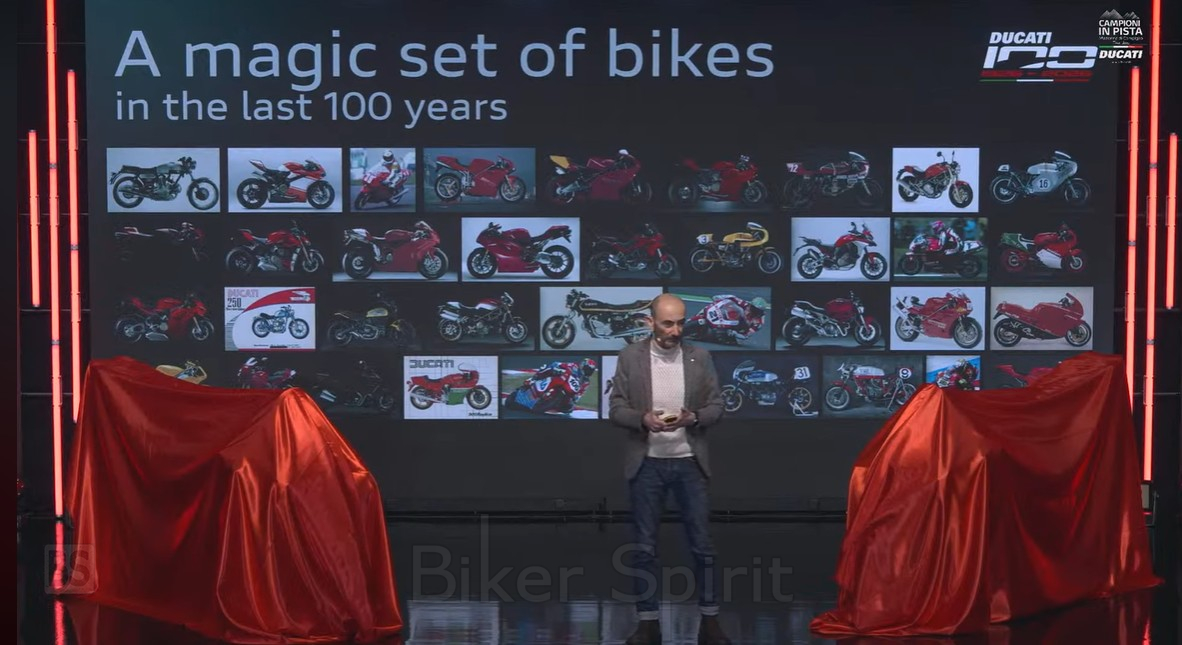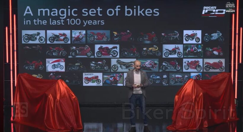 Ο Gavin Emmett ανέλαβε τον ρόλο του οικοδεσπότη, δίνοντας τον τόνο της εκδήλωσης και υπογραμμίζοντας πως «εδώ, χρόνο με τον χρόνο, η Ducati γυρίζει σελίδα για να ξεκινήσει ένα νέο κεφάλαιο». Λίγο αργότερα, τη σκυτάλη πήρε ο CEO της εταιρείας, Claudio Domenicali, ο οποίος στάθηκε όχι μόνο στη διαδρομή ενός αιώνα Ducati, αλλά και στην απόλυτη κυριαρχία της στο MotoGP, με 88 συνεχόμενα βάθρα, ένα ρεκόρ που δεν έχει πετύχει ποτέ άλλος κατασκευαστής.
