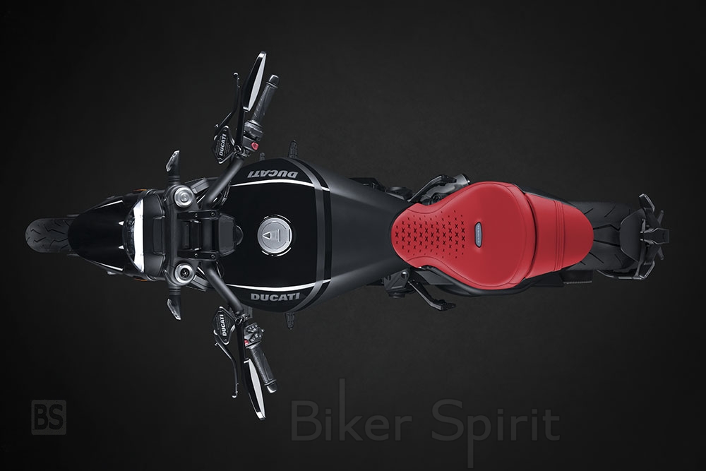 Στη μοτοσυκλέτα έχουν προστεθεί, επίσης, ορισμένες στιλιστικές λεπτομέρειες που κάνουν την εμφάνισή της ακόμα πιο εντυπωσιακή, όπως οι δαγκάνες των φρένων και τα καπάκια κυλινδροκεφαλής σε χρώμα Ducati Red και οι σφυρήλατες ζάντες ελαφρού κράματος, βαμμένες σε γυαλιστερό μαύρο χρώμα.