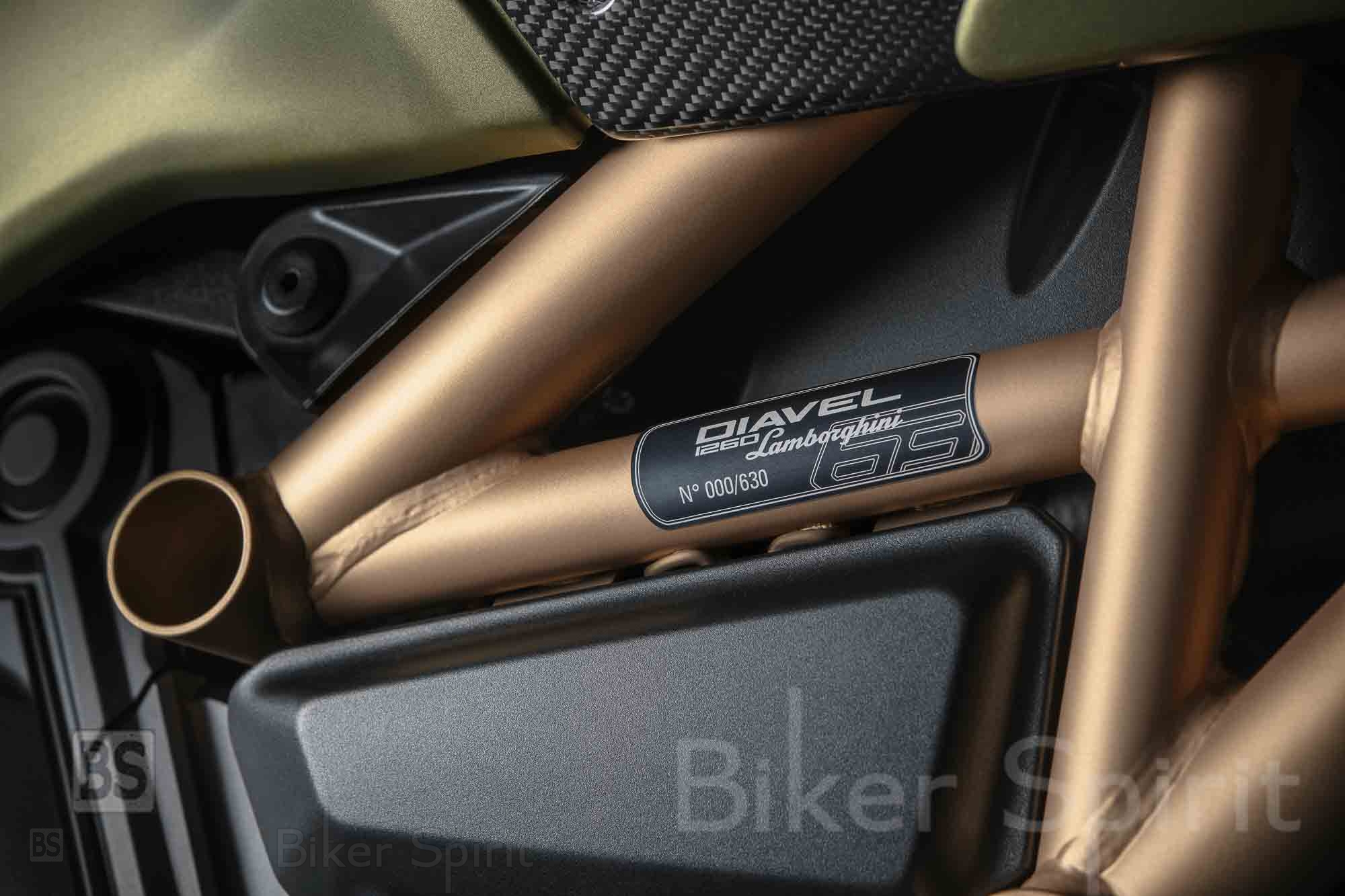 To νούμερο 63 ξεχωρίζει, ένας σημαντικός αριθμός για τον κατασκευαστή της Sant’Agata Bolognese, ο οποίος ιδρύθηκε το 1963. Από αυτόν τον αριθμό, ακριβώς, λαμβάνουμε τις 630 μονάδες που θα παραχθούν από το Diavel 1260 Lamborghini, καθεμία από τις που θα φέρει τον σειριακό αριθμό σε μια πλάκα αλουμινίου που εφαρμόζεται στο πλαίσιο.