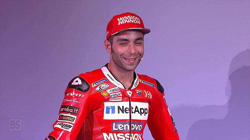 Danilo Petrucci (# 9, Mission Winnow Ducati) : «Η περασμένη σεζόν ήταν πολύ σημαντική για μένα, το καλύτερο που έχω κερδίσει ποτέ από την άποψη των βαθμών που σημείωσα. Τα εργοστασιακά χρώματα, με κάνουν πραγματικά περήφανο και ανυπομονώ να ξεκινήσω. Έχω ένα μεγάλο συναίσθημα με το νέο μου πλήρωμα και το τεχνικό επίπεδο είναι υψηλότερο από ποτέ. Βελτιώσαμε ακόμα και άλλαξα το πρόγραμμα προετοιμασίας για να είμαι σίγουρος όταν θα βρεθώ στον πρώτο μου αγώνα. Είμαι πολύ χαρούμενος που μιλάω με τον Andrea: όχι μόνο είναι ένας φαινόμενο αναβάτης αλλά και ένας θαυμάσιος άνθρωπος. γνωρίζαμε ο ένας τον άλλον για μεγάλο χρονικό διάστημα και αρχίσαμε να προπονούμαστε μαζί με ένα στόχο: και οι δύο να έχουν μια πραγματικά δυνατή σεζόν.»