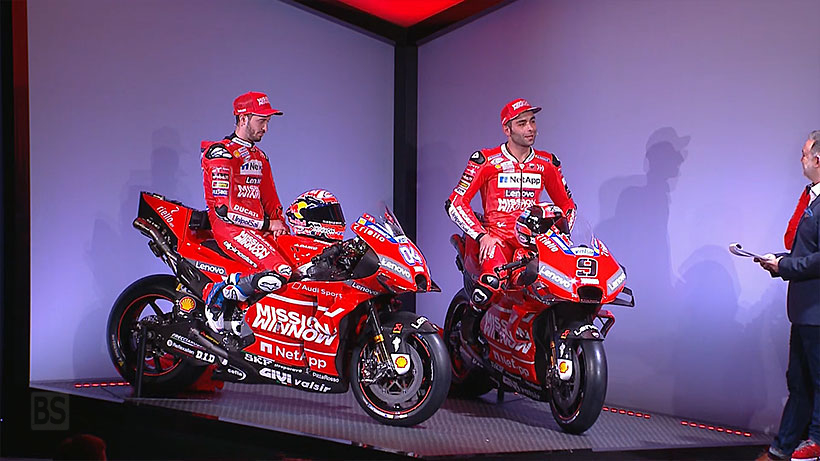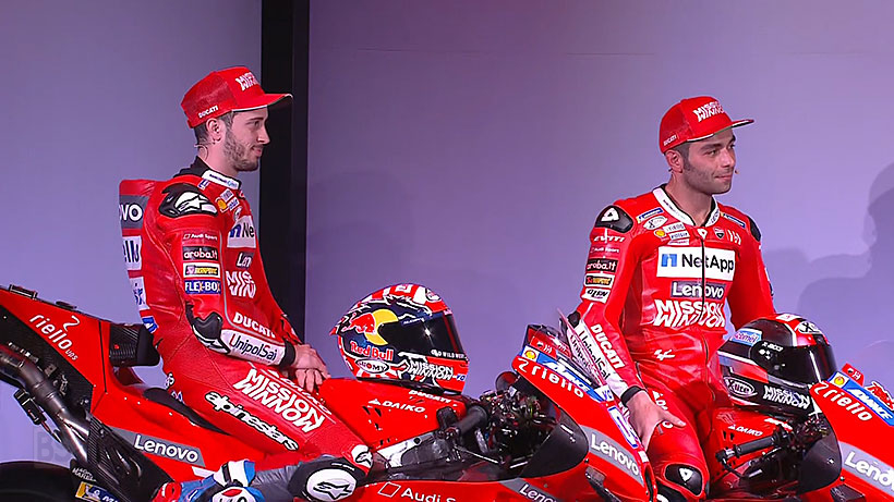Andrea Dovizioso (# 04, Mission Winnow Ducati) : . «Το 2018 ήταν μια πολύ θετική χρονιά για μένα Ξεκινήσαμε με μια νίκη και, ακόμη κι αν είχαμε κάποια σκαμπανεβάσματα, oι δυσκολίες, μας ώθησε να κοιτάξουμε προς νέες κατευθύνσεις και στα μισά του δρόμου κατά τη διάρκεια της σεζόν κάναμε ένα μεγάλο βήμα προς τα εμπρός. Είμαι πολύ χαρούμενος με το έργο που επιτελείται με την ομάδα, αγωνιστήκαμε για τη νίκη βασικά στο δεύτερο μισό του πρωταθλήματος και νομίζω ότι θα κάνουμε περισσότερες βελτιώσεις στις επόμενες δοκιμές για να ξεκινήσουμε τη σεζόν με τον καλύτερο δυνατό τρόπο. Οι προσδοκίες είναι υψηλές, έχω μια μεγάλη αίσθηση τόσο με την μοτοσυκλέτα όσο και με το πλήρωμά μου και μπορούμε να βασιζόμαστε σε περισσότερη εμπειρία. Είμαι ευτυχής να έχουμε μαζί μας τον Danilo στο γκαράζ, ξέρουμε ο ένας τον άλλο καλά και πιστεύω ότι μπορούμε να παλέψουμε προς τον σωστό δρόμο αλλά και να συνεργαστούμε για την ανάπτυξη του πακέτου.»