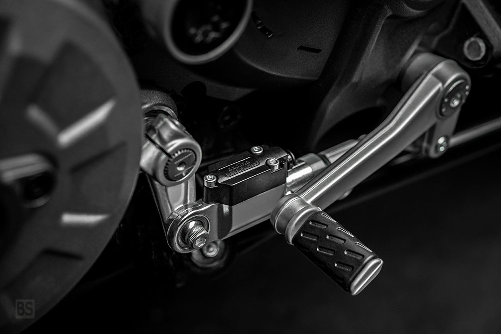 Το σύστημα πέδησης πρώτης κατηγορίας αποτελείται από δύο δίσκους Brembo με διάμετρο 330 mm σε συνδυασμό με δαγκάνες Brembo M50 monobloc. Ο οπίσθιος δίσκος διαμέτρου 245 mm συνοδεύεται από δαγκάνα Brembo.