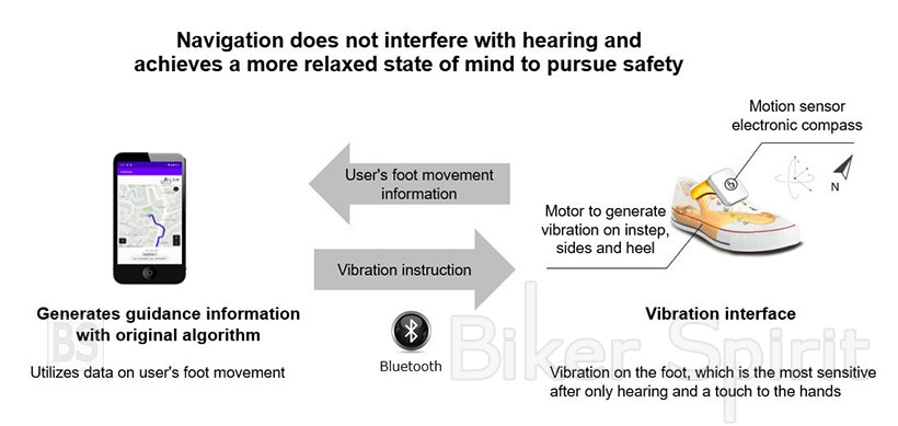 Η καθοδήγηση παρέχεται μέσω δονήσεων στο πέλμα, ώστε να μην επηρεάζει το χέρι του χρήστη που κρατά ένα λευκό μπαστούνι, ούτε την ακοή του μέσω της οποίας προσλαμβάνει ήχους του περιβάλλοντος.