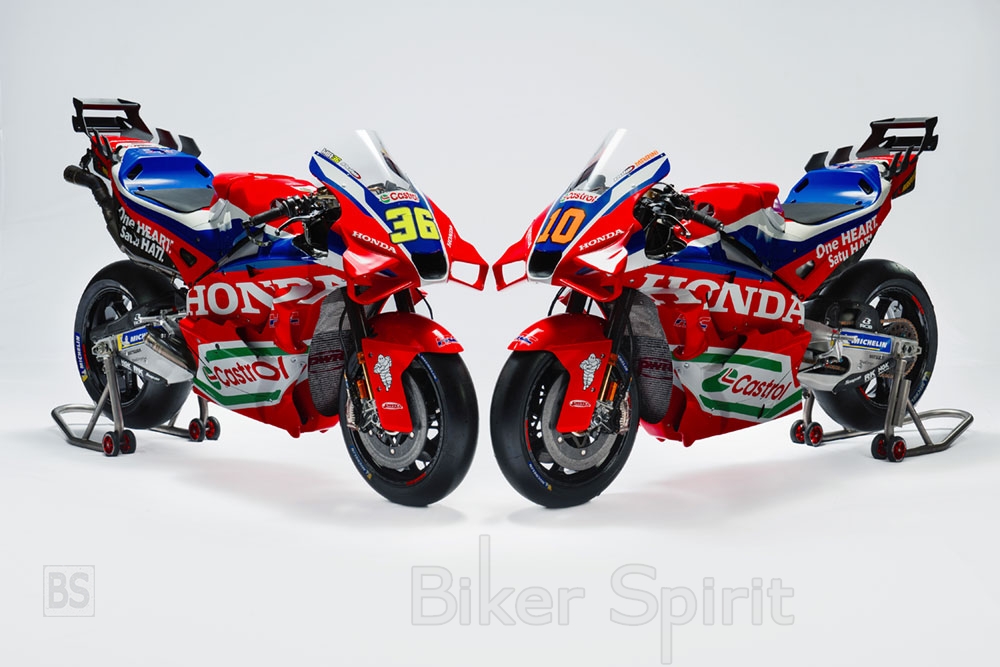 Η ομάδα Honda HRC Castrol θα διαθέτει το καθιερωμένο ζευγάρι του δυο φορές παγκόσμιου πρωταθλητή Joan Mir και του έξι φορές νικητή Grand Prix Luca Marini. Και οι δύο αναβάτες αποτέλεσαν ακρογωνιαίους λίθους στις πρόσφατες εξελίξεις της Honda RC213V και θα συνεχίσουν να εργάζονται για να επιστρέψει η Honda στην κορυφή του Παγκόσμιου Πρωταθλήματος MotoGP.