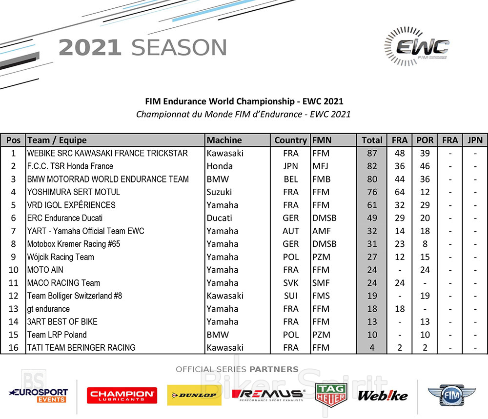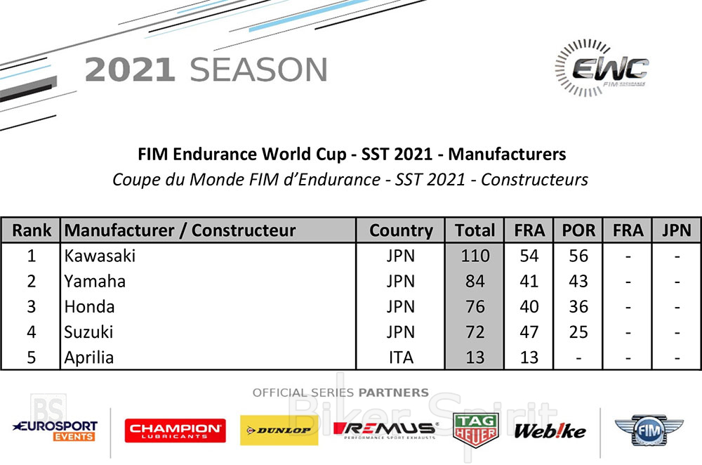 Η δεύτερη θέση τους στο βάθρο επιτρέπει στην Webike SRC Kawasaki France Trickstar να φτάσει στην κορυφή της κατάταξης FIM EWC του 2021.