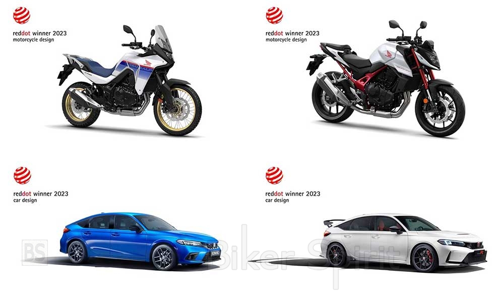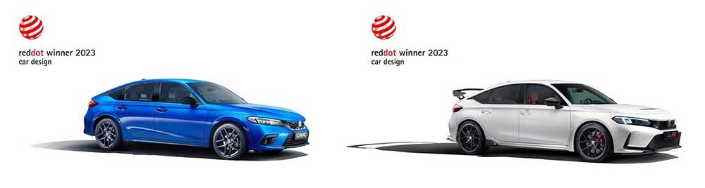 Η Honda απέσπασε δύο διακρίσεις στο θεσμό 2023 Red Dot Design Awards, για το ολοκαίνουργιο Civic e:HEV και για το Civic Type R. Η Honda γιόρτασε επίσης άλλες δύο διακρίσεις στα Red Dot Design Awards, για τις μοτοσυκλέτες CB750 Hornet και XL750 Transalp.