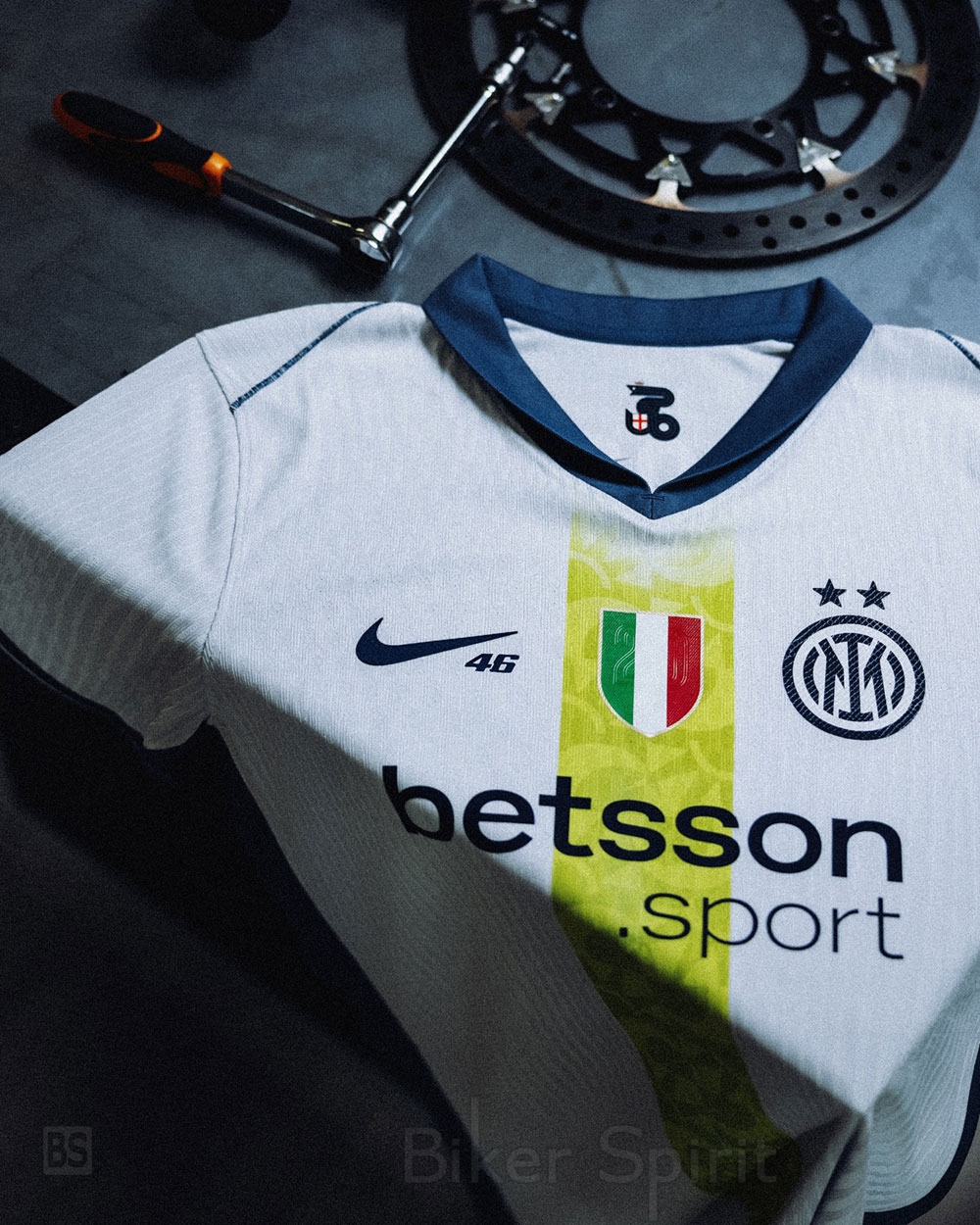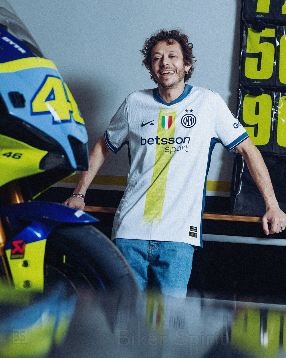 Ο ίδιος ο Valentino Rossi είχε ήδη την ευκαιρία να ποζάρει με τη φανέλα που είναι αφιερωμένη σε αυτόν, σε φωτογραφίες που διένειμε η Inter και η Nike, η μάρκα πίσω από αυτή την πρωτοβουλία. αυτό το Σαββατοκύριακο