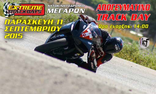 Το Σαββατοκύριακο 12 και 13 Σεπτεμβρίου 2015, θα διεξαχθεί ο 4ος Αγώνας του Πανελλήνιου Πρωταθλήματος Ταχύτητας (ΠΠΤ) Μοτοσυκλετών στο αυτοκινητοδρόμιο των Μεγάρων.