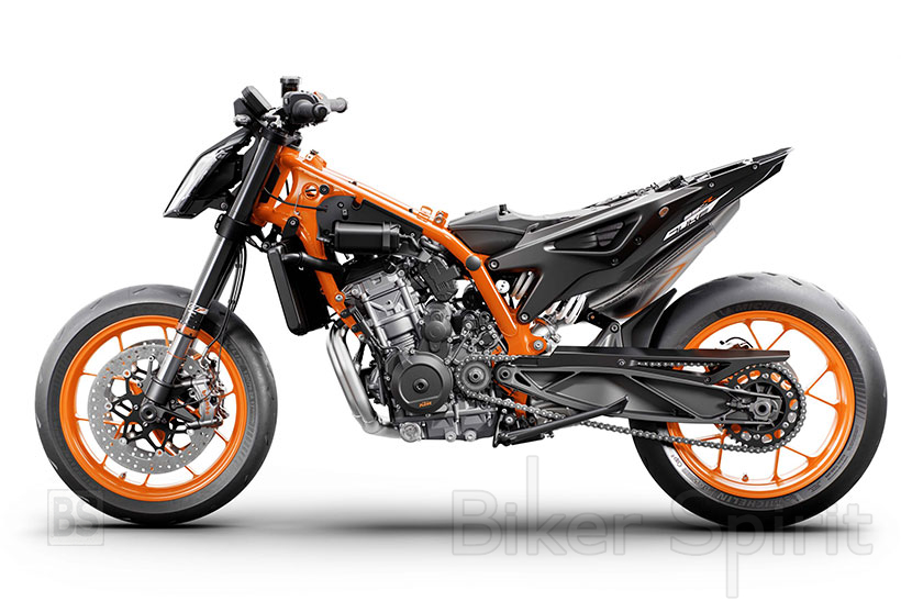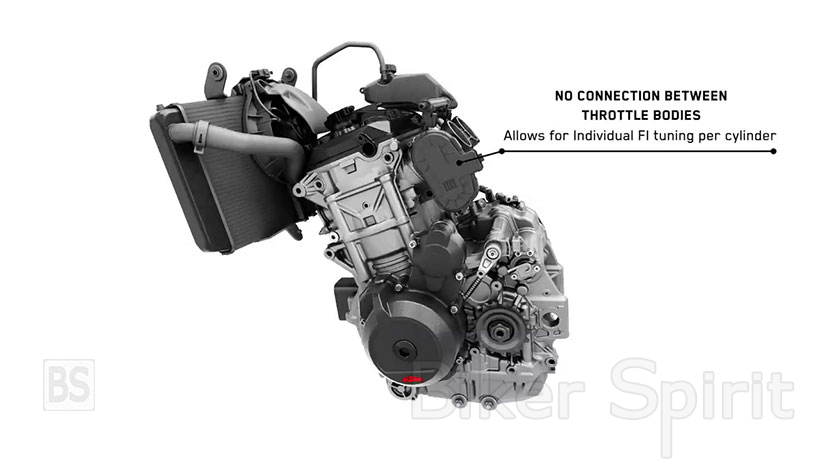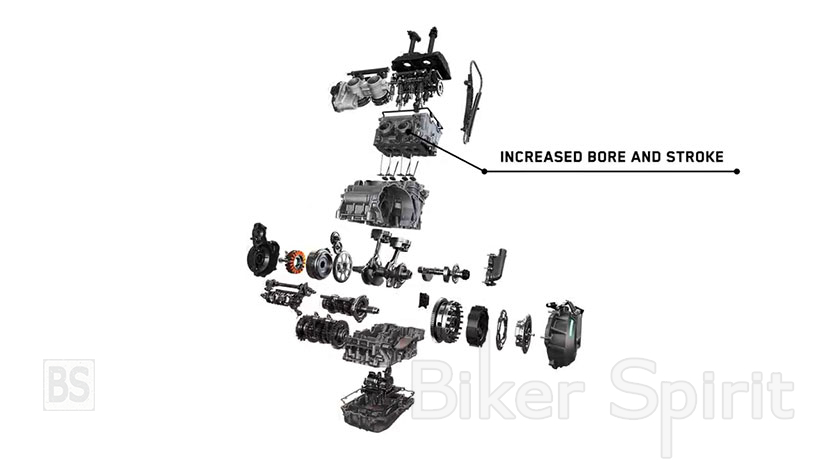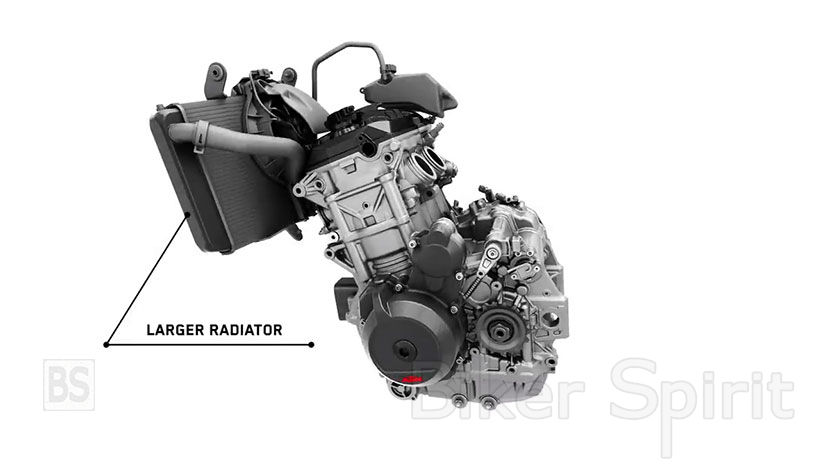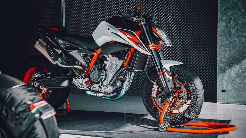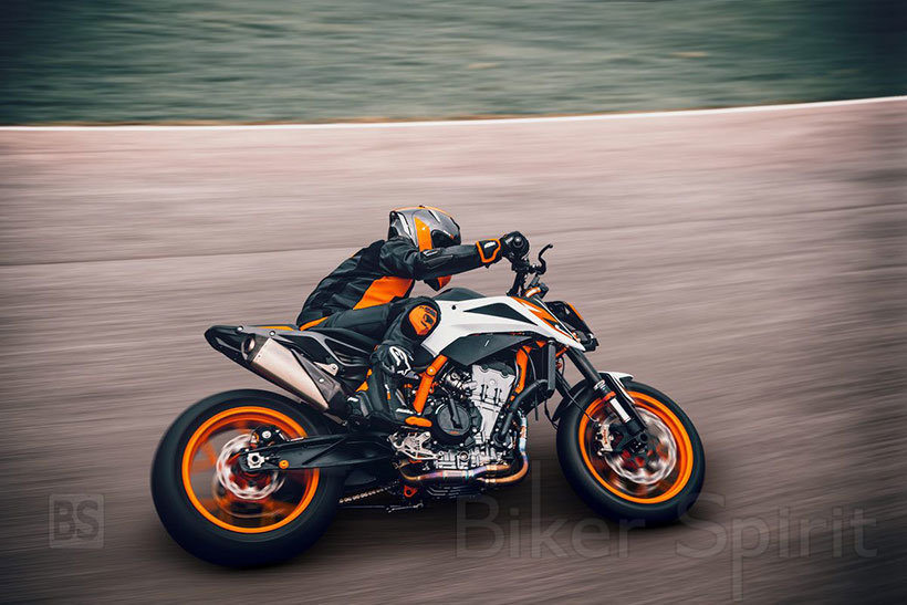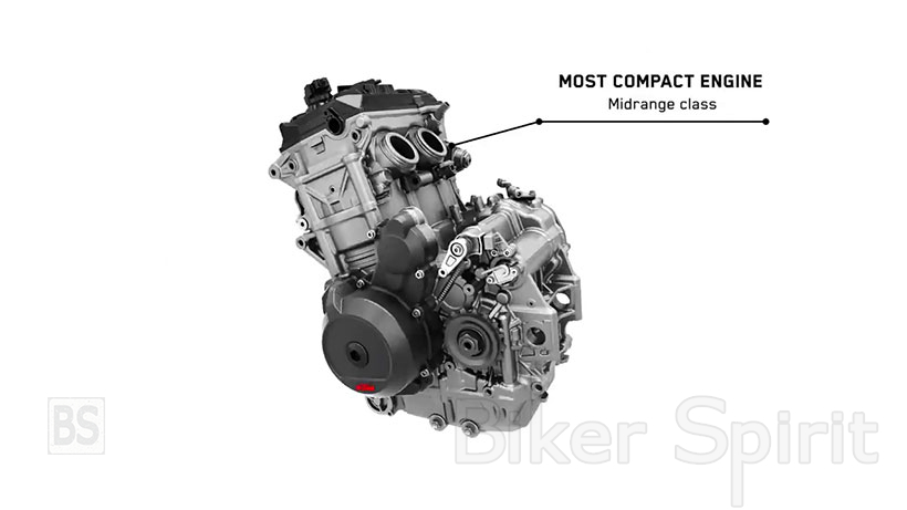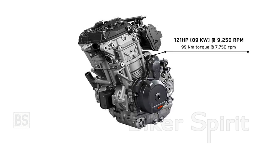 Οι 105 ίπποι του 790 απέχουν κατά πολύ από τους 120 ίππους κατά μέσο όρο από τους αντιπάλους του, οπότε ο κινητήρας 890 είναι ολοκαίνουργιος, με μεγαλύτερες διαστάσεις σε διάμετρο όσο και σε δύναμη, εκτός από έναν διαφορετικό και ποιο “άγριο” εκκεντροφόρο άξονα, μεγαλύτερα και ελαφρύτερα πιστόνια, υψηλότερη συμπίεση και ένα βελτιστοποιημένο κιβώτιο ταχυτήτων, για να φτάσει τους 121 hp στις 9.950 rpm και ροπή 99 Nm. Έχει επίσης τοποθετηθεί ένα μεγαλύτερο ψυγείο.