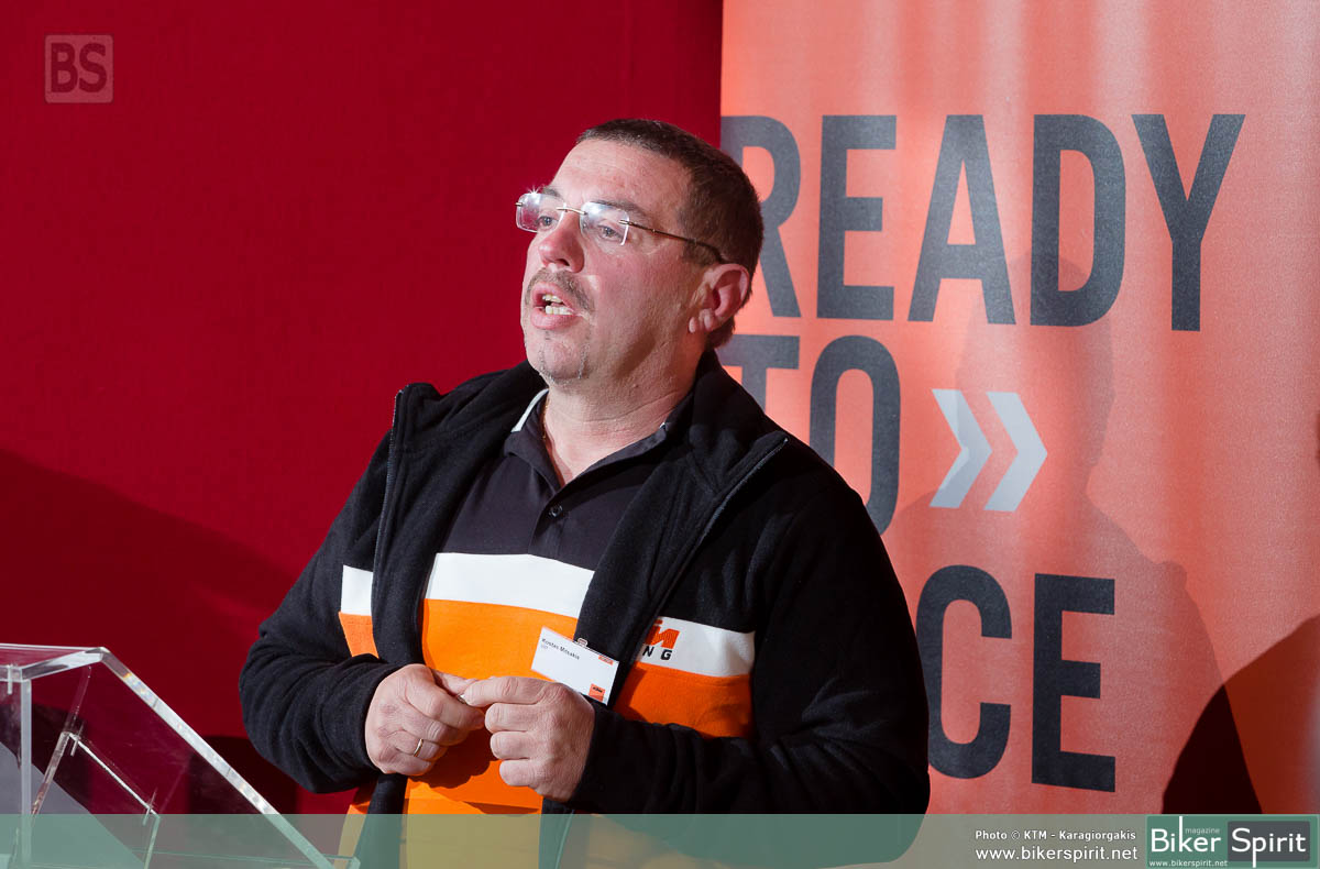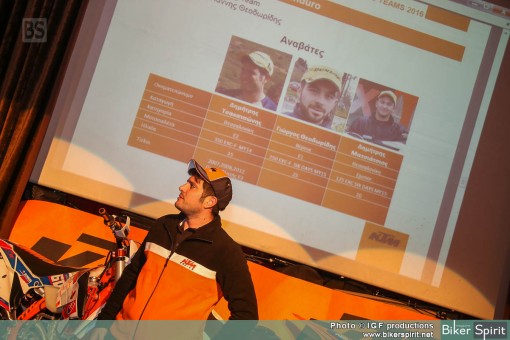 Στην συνέχεια Ο Σόλων Κοντός, Πρόεδρος της KTM South East Europe παρουσίασε τις αγωνιστικές ομάδες που θα πάρουν μέρος στα Ελληνικά Πρωταθλήματα, χωρίς να κρύψει την ανησυχία του για την καθυστέρηση ανακοίνωσης των πρωταθλημάτων από την ομοσπονδία.