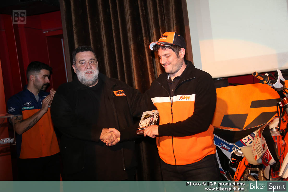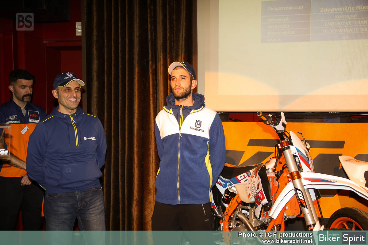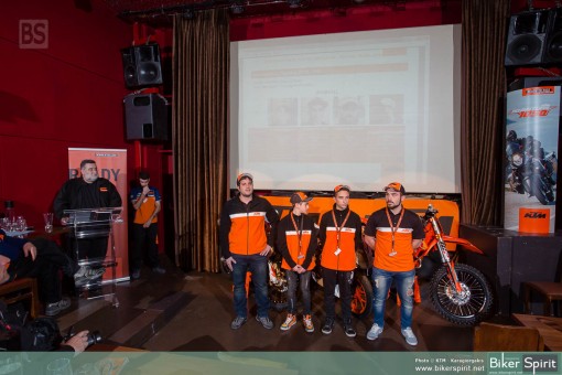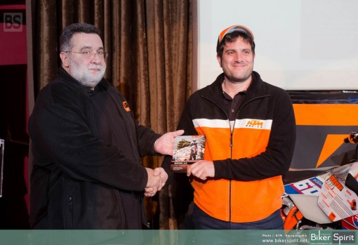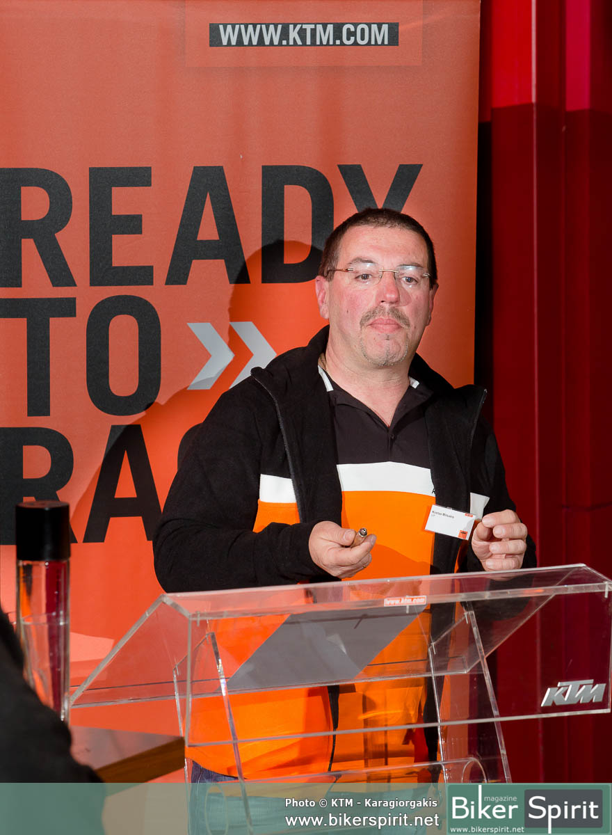 Στο τέλος η KTM South East Europe κλείνοντας αυτήν την εκδήλωση βράβευσε τρεις ανθρώπους, για την προσφορά τους στην KTM. Τον ταξιδευτή Κώστα Μητσάκη, τον Δημήτρη Τσακατσώνη για την εταιρεία Makina Α.Ε. και για την πολυετή συνεργασία με την οικογένεια Τσακατσώνη και τέλος τον Παντελή Καρίμαλη που πάντα είναι ο άνθρωπος πανταχού παρόν και πρόθυμος να βοηθήσει την ΚΤΜ όπου και όποτε του ζητηθεί. Αξίζουν συγχαρητήρια στην KTM για την αντιμετώπιση των πραγμάτων στην Ελλάδα, αφού δρα και κινείτε όπως γράψαμε και στην αρχή μέσα στα Διεθνή πρότυπα κάτι που είναι σπάνιο για την Ελλάδα