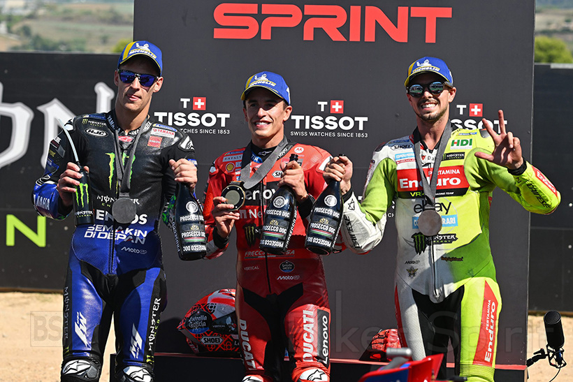 Τον αγώνα Tissot Sprint, στον οποίο συμμετείχαν όλοι οι οδηγοί μέσαιο μείγμα γόμας για τα μπροστινά ελαστικά MICHELIN και μαλακό μείγμα γόμας για τα πίσω ελαστικά, κέρδισε ο Marc Márquez (Ducati Lenovo Team) με χρόνο 19’58.946, μπροστά από τους Fabio Quartararo (Monster Energy Yamaha MotoGP) και Fabio Di Giannantonio (Pertamina Enduro VR46 Racing Team). Ξεκινώντας από την τρίτη θέση, ο οκτώ φορές Παγκόσμιος Πρωταθλητής από την Ισπανία σημείωσε δυνατές επιδόσεις, με συνολικό χρόνο αγώνα περισσότερο κατά ενάμιση δευτερόλεπτο γρηγορότερα από τον αγώνα του 2024.