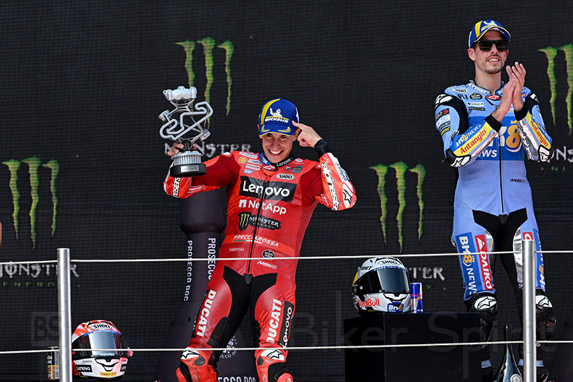 Την Κυριακή, ο αγώνας MotoGP™ πραγματοποιήθηκε σε ελαφρώς πιο δροσερές συνθήκες (38°C στην εκκίνηση), αλλά ήταν εξίσου απαιτητικός για τα πίσω ελαστικά.