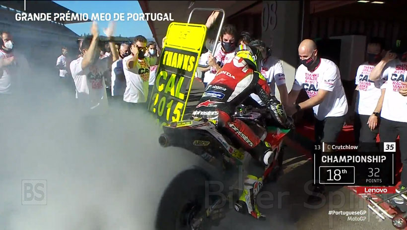Ο συγκεκριμένος αγώνας ήταν κι ο τελευταίος για τον Cal Crutchlow (LCR Honda), καθώς αποσύρεται από οδηγός πλήρους απασχόλησης, για να αναλάβει ρόλο δοκιμαστή στη Yamaha.